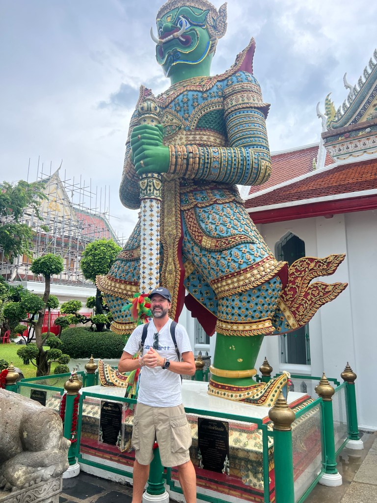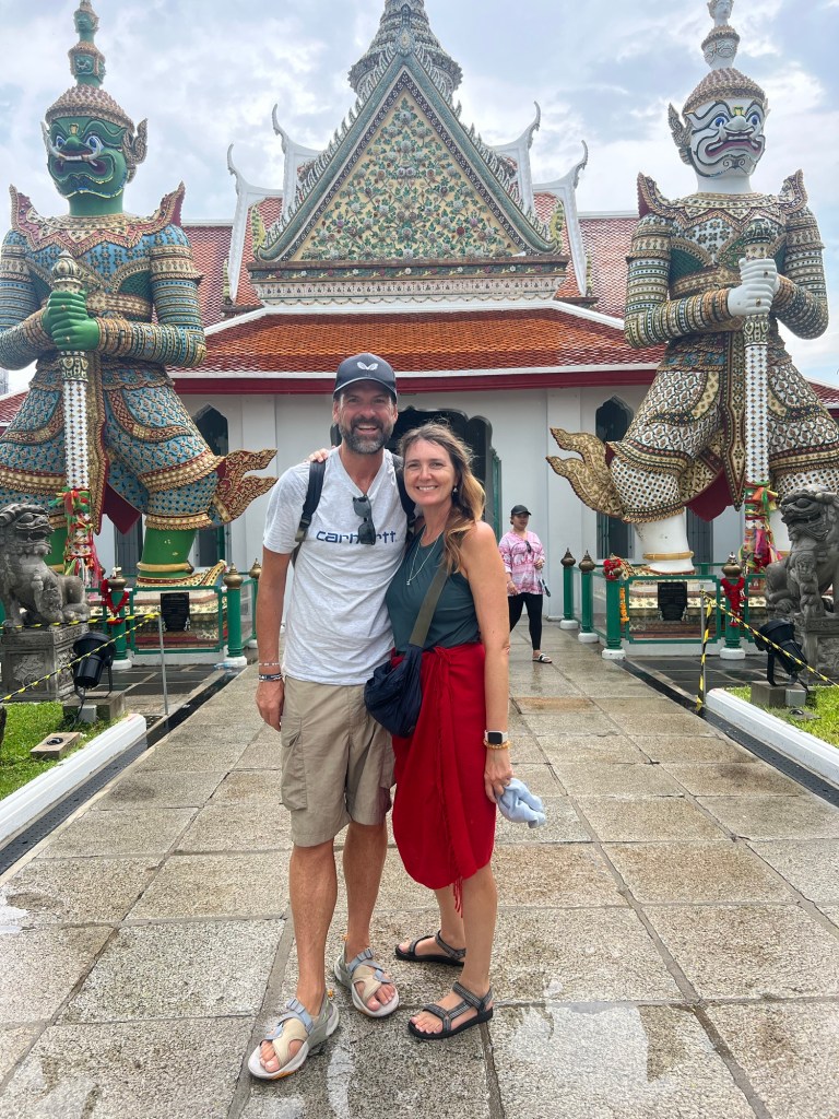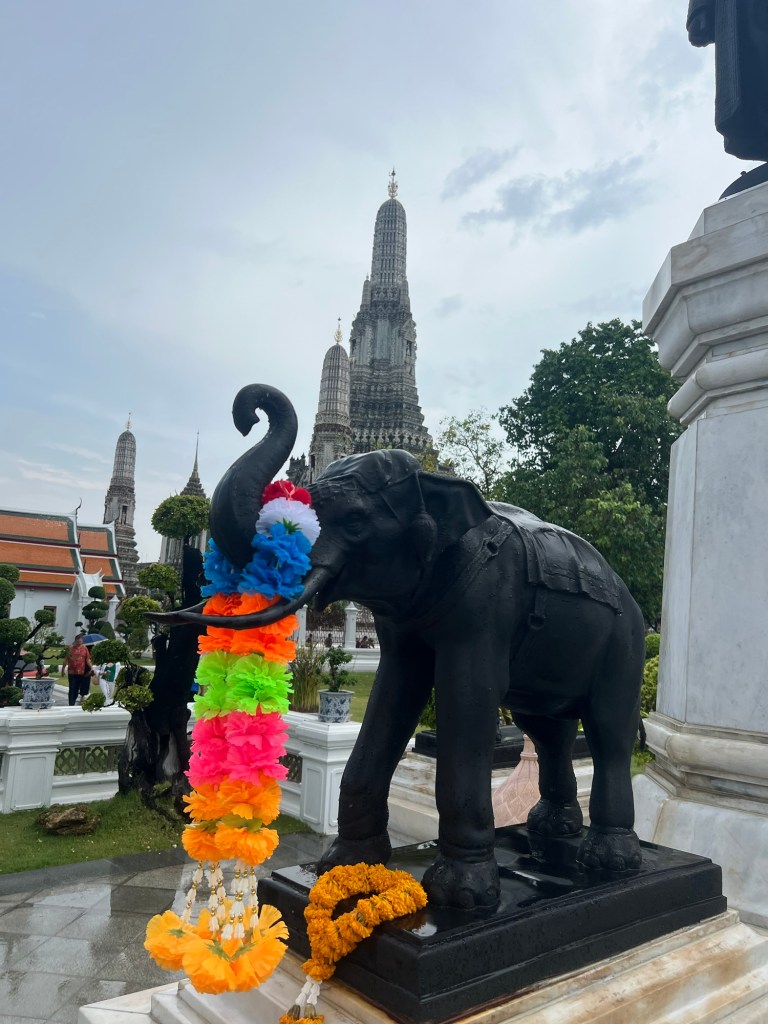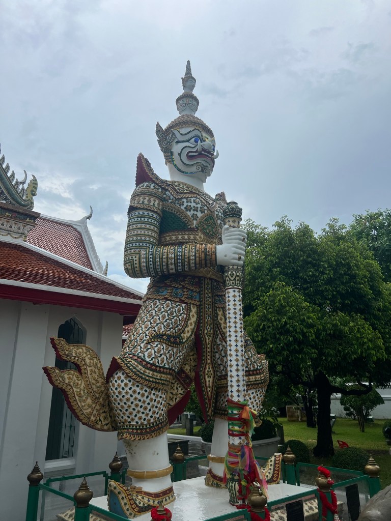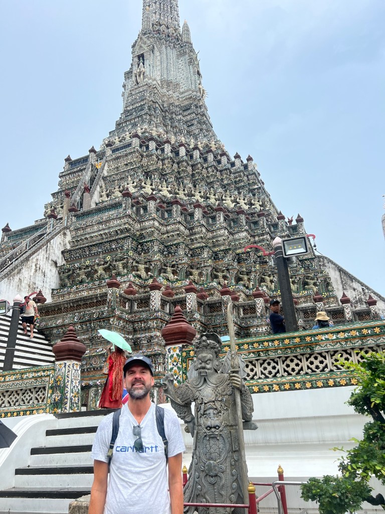 For the first time since we arrived in Bangkok, the sun was in hiding and the rain arrived clearing most of the usual tourist spots. This worked in our favour as within a hour the rains had passed and we were able to walk around Wat Arun with little or no queues.