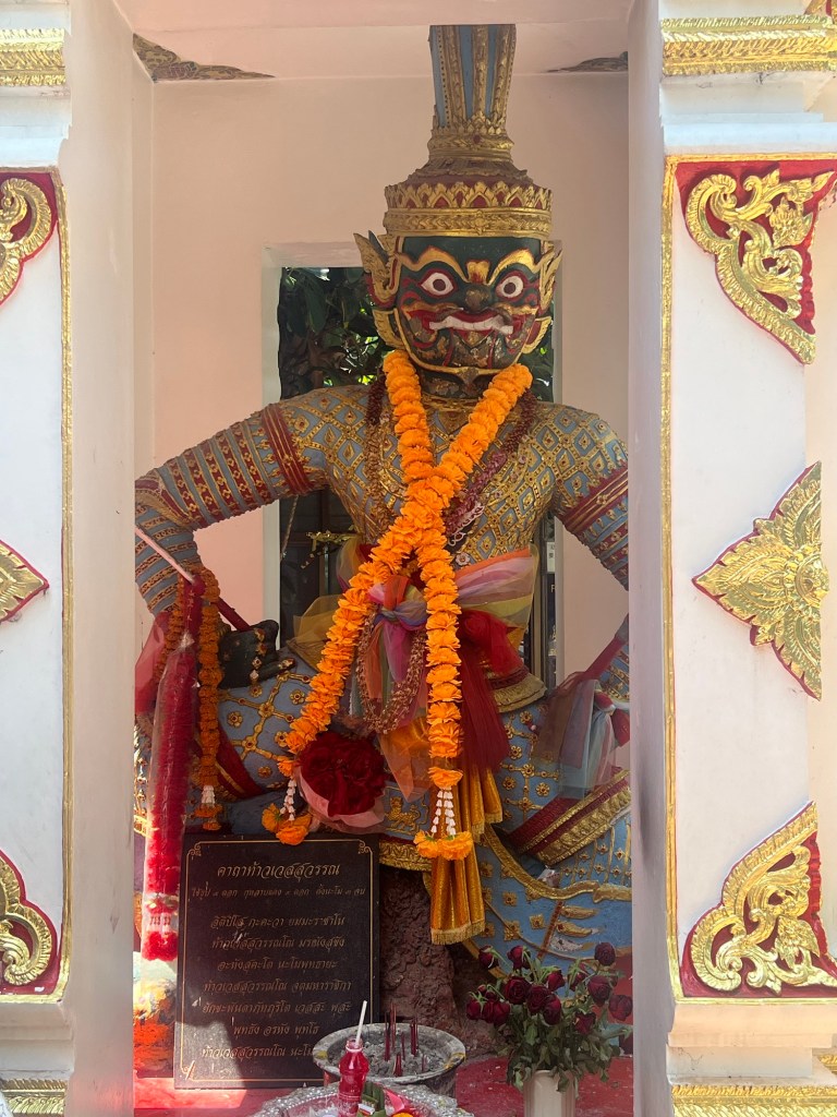 At the entrance to the temple was one of the ‘guards’ decorated in finery with offerings sitting at its feet. As ever the colours are so vivid and you can’t help but marvel at their vibrancy.