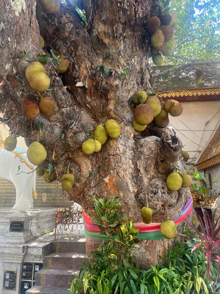 Adjacent to the entrance was a jackfruit tree, with the ooh so massive fruit that sits precariously on the main trunk. The size and weight of these fruits are such that if you were in the wrong place at the wrong time they would surely severely injure, if not kill you if they landed on your head!