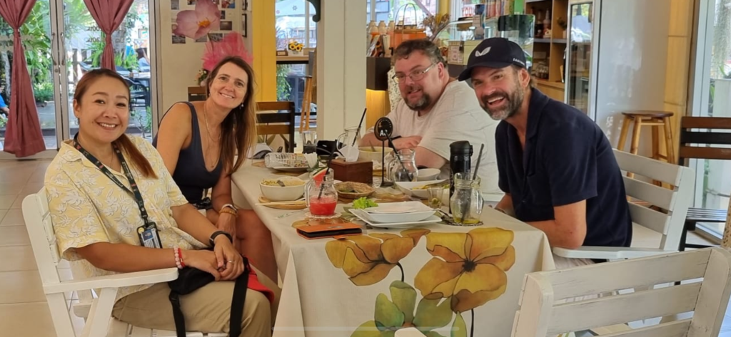After an enjoyable lunch, Andy and Mark decided to experience a Thai massage with the masseurs being female prisoners on day release. Both survived to tell the story and seemed to enjoy being stretched and bent back into shape.