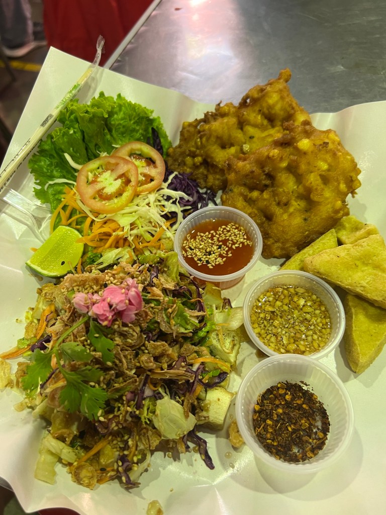 In the evening we returned to the street food market we visited last night. After hearing comments about the vegetarian food on offer, Andy tried it out for himself and is now a convert.