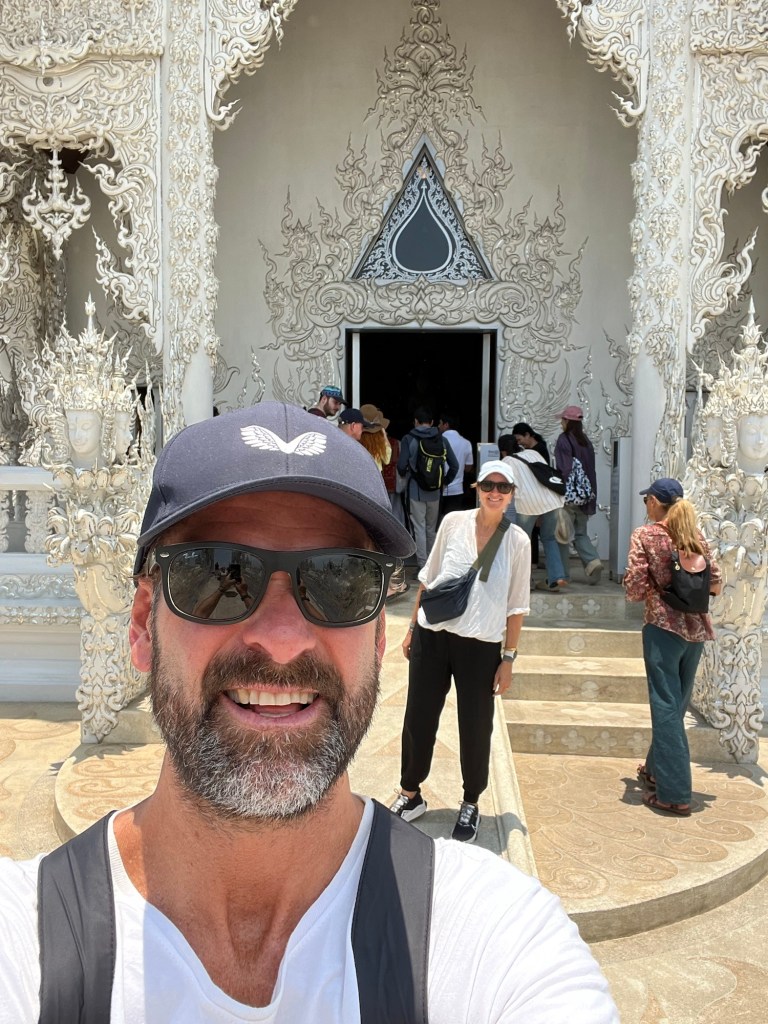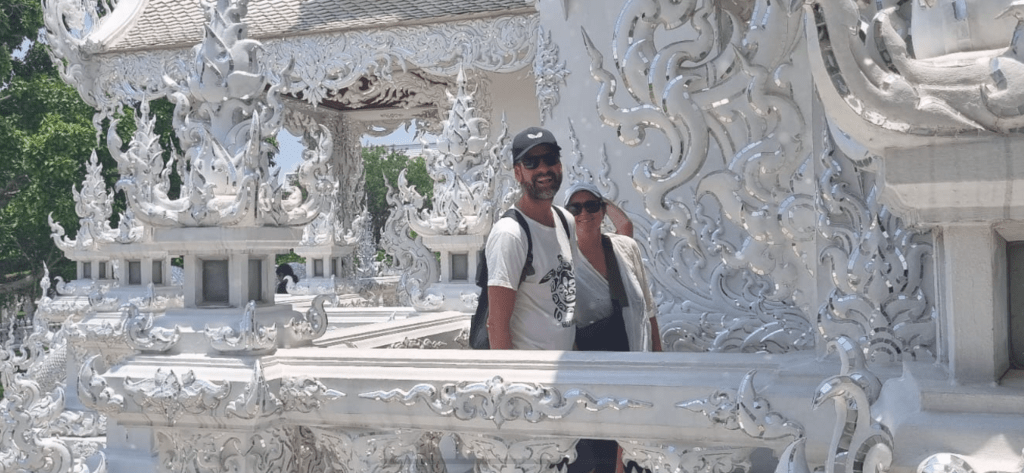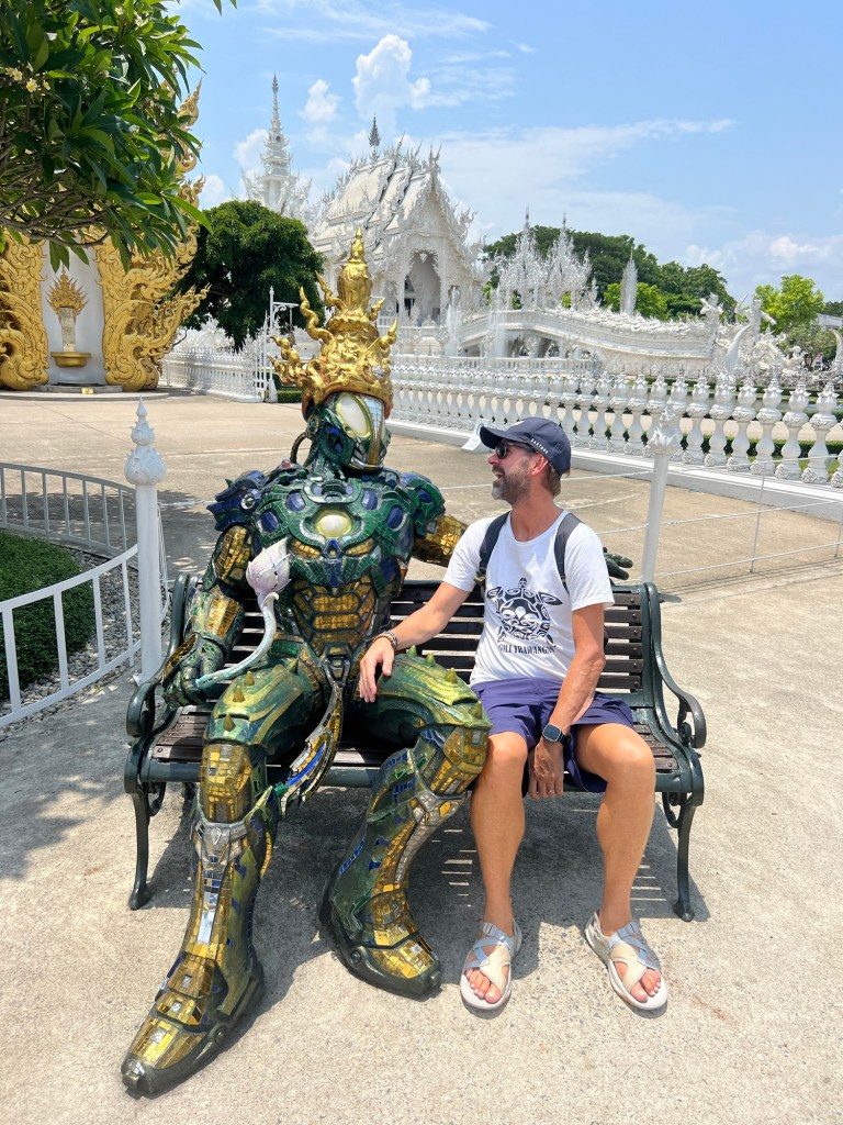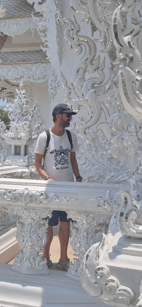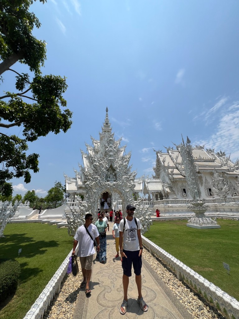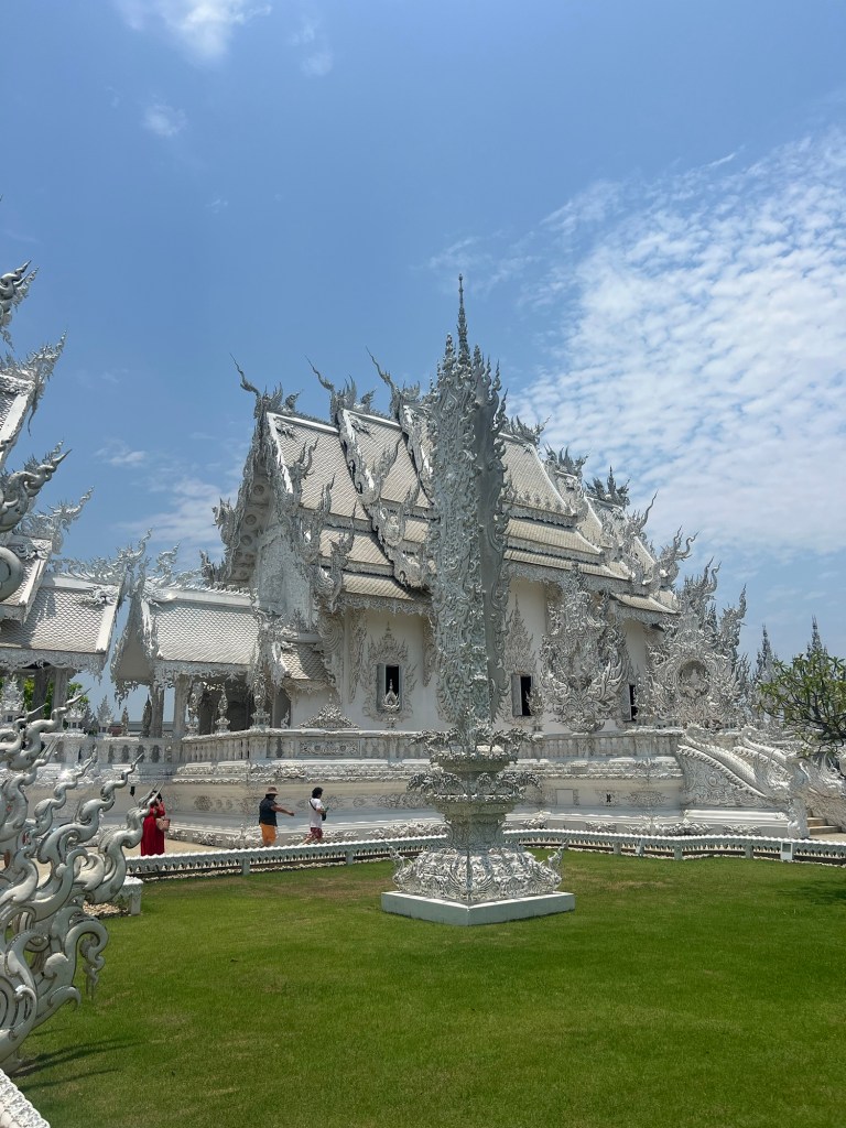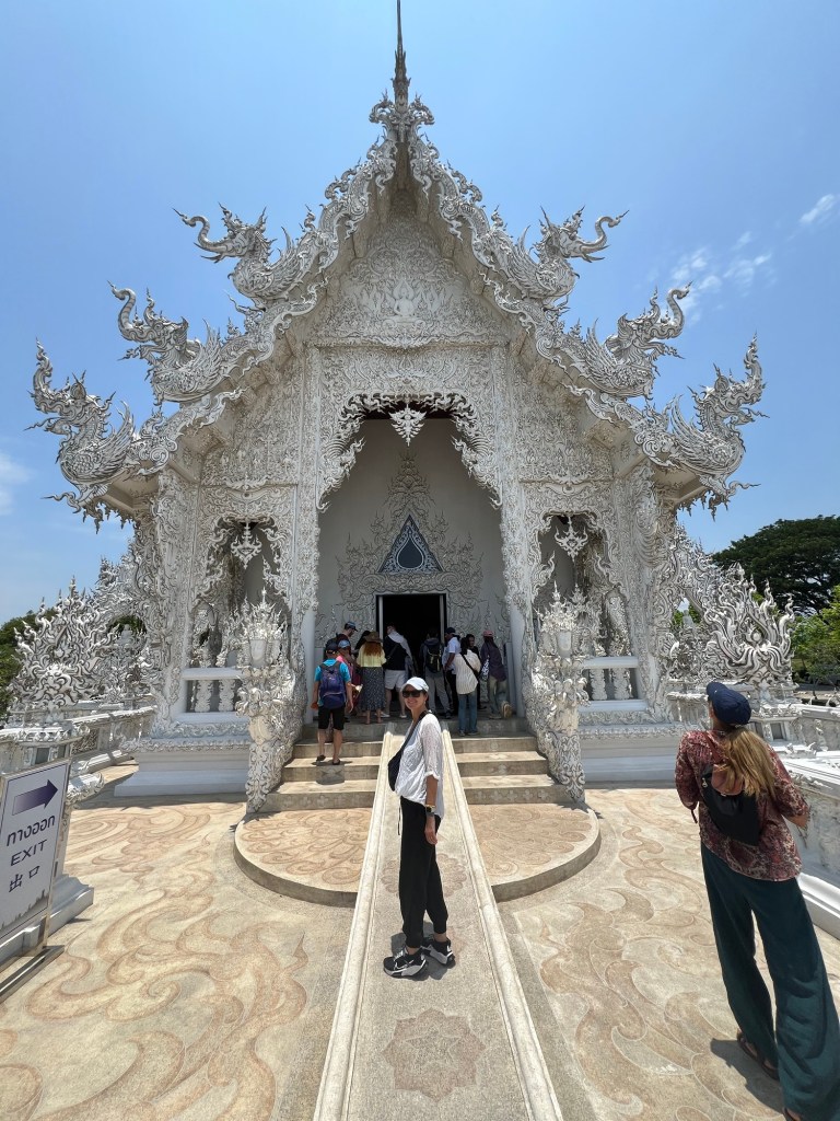 Today was a travel day with a 5hr minibus drive from Chiang Mai to Chiang Rai. On the way we stopped at the White Temple (Wat Rong Khun). The White temple was created by Chalermchai Kositpipat, a national artist who designed, constructed, and opened it to visitors in 1997.