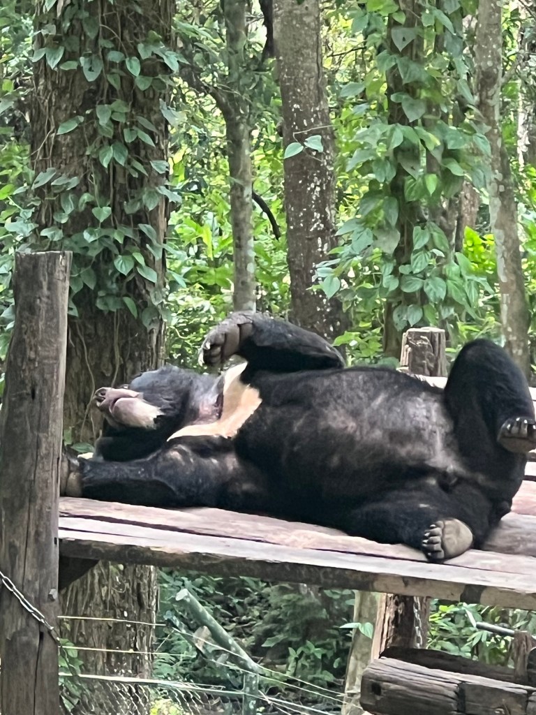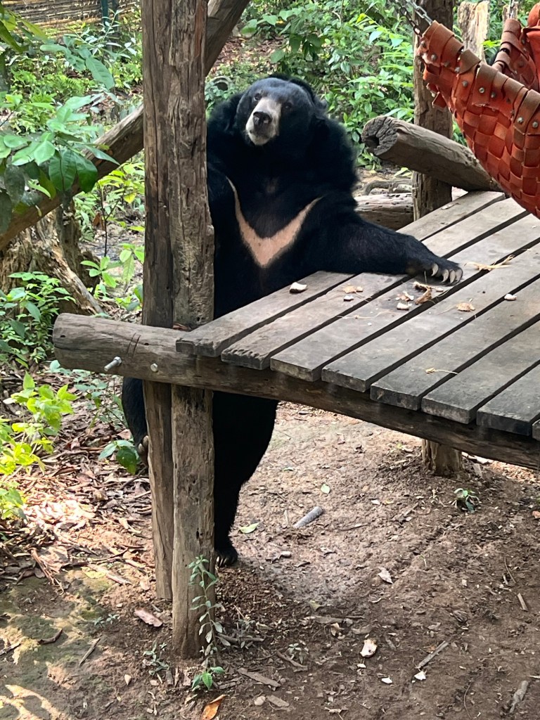 After our swim, we stopped off at the moon-bear sanctuary next to the waterfall to see bears up close.