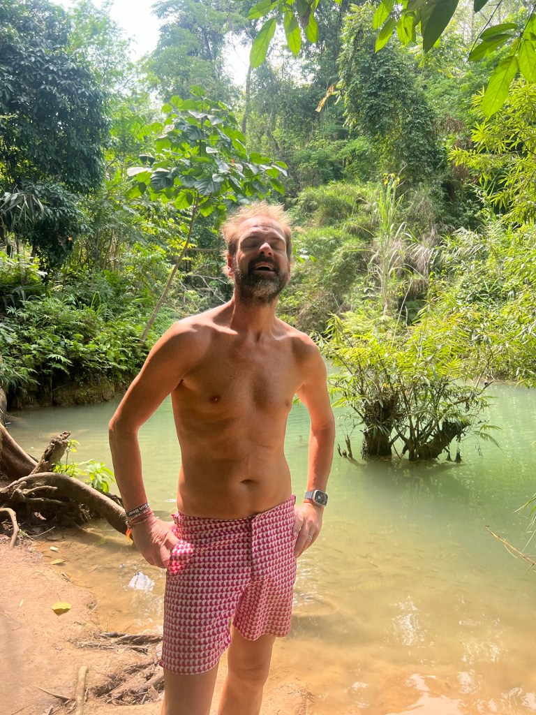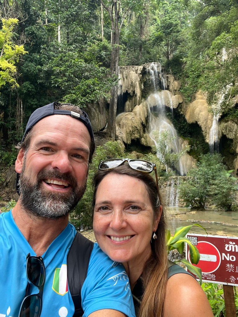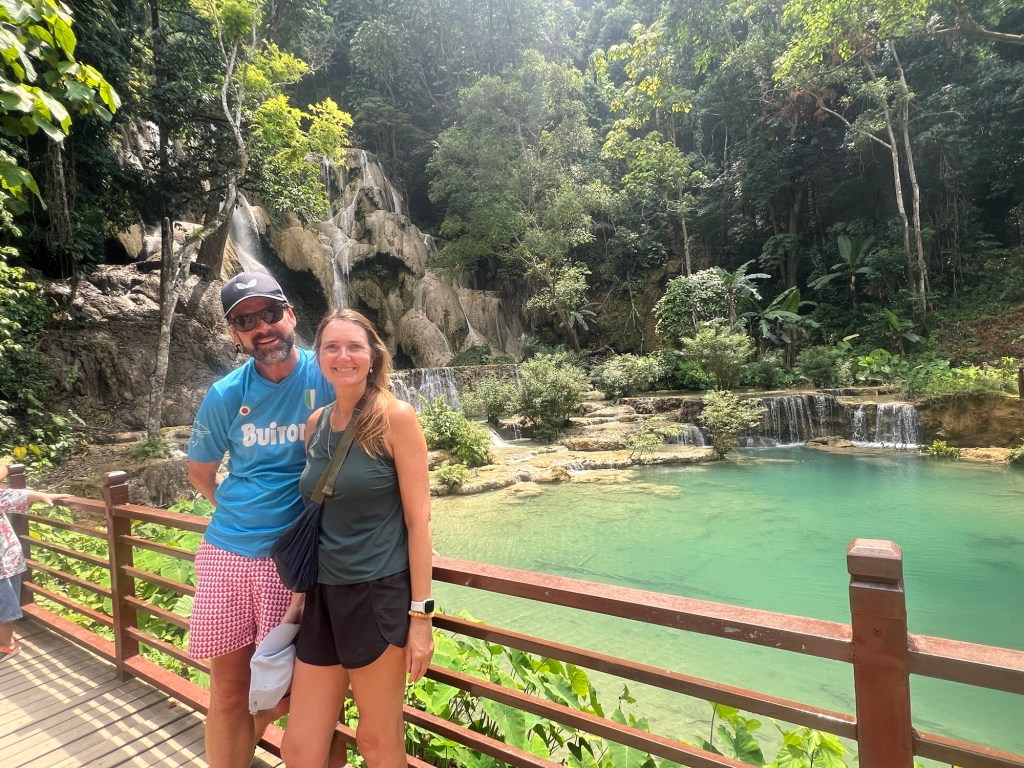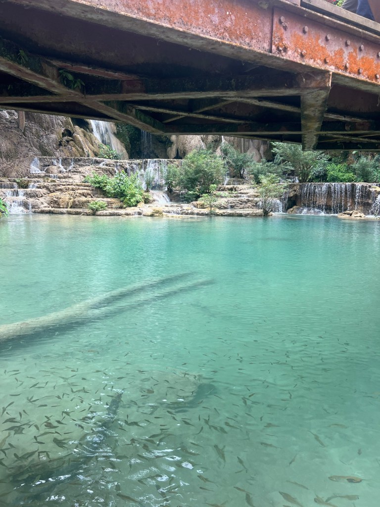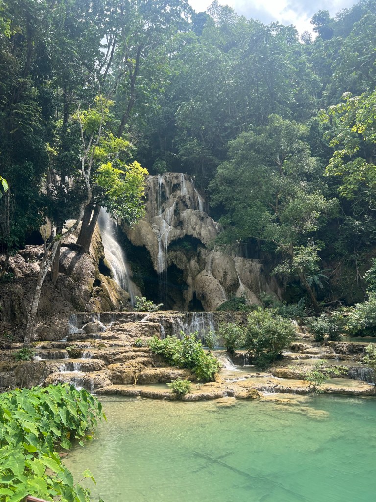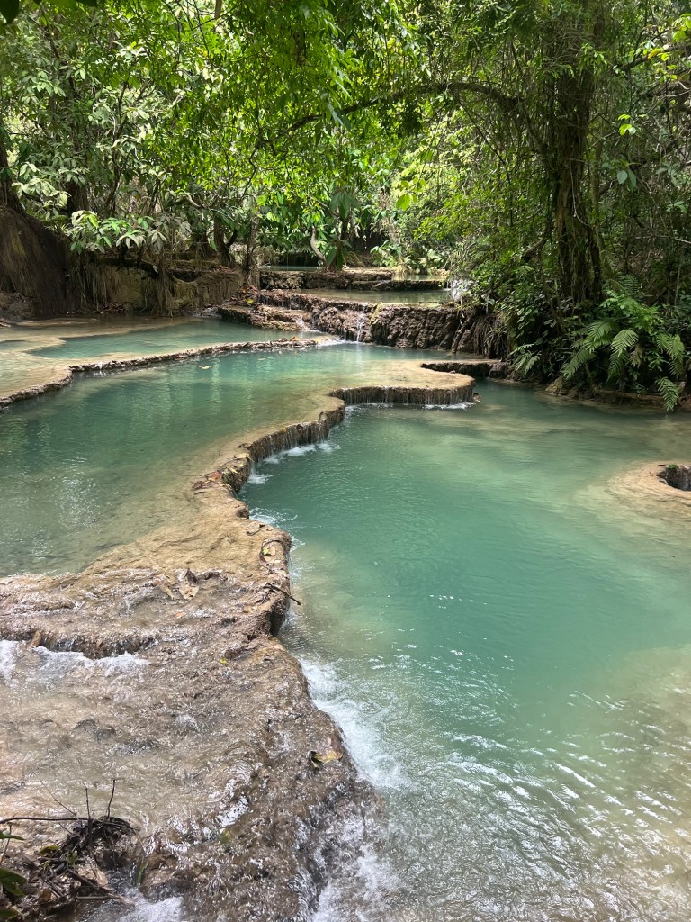 The waterfalls were stunning, with the clearest of blue water set against the unspoilt Laos jungle.