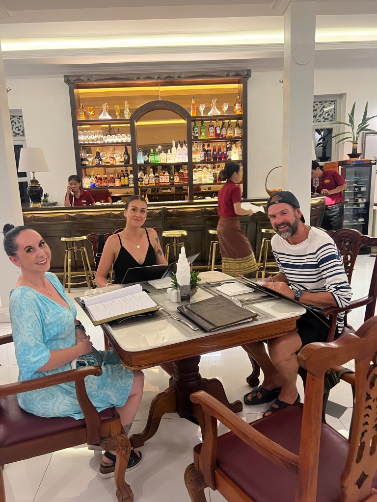 Eight of us made it to a old French colonial bar serving cocktails, before half went off to a burger place, whilst the rest of us visited a very posh and fancy hotel restaurant for some upscale dinning.