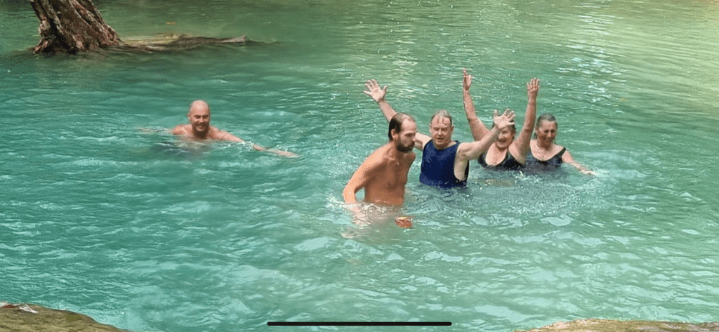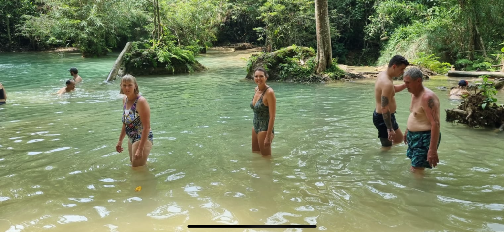 After the hot and sweaty walk up to the summit of the waterfalls, we were pleased to be able to take a much needed dip into the clear and cool water and enjoy the views.