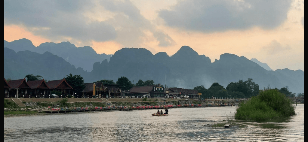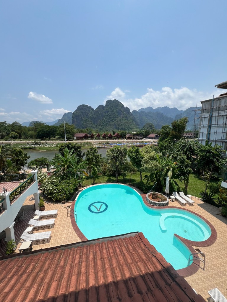 It was a hot day on our arrival in Vang Vieng, so within 10mins we had unpacked and we hit the hotel pool to enjoy the views of the river and mountains.