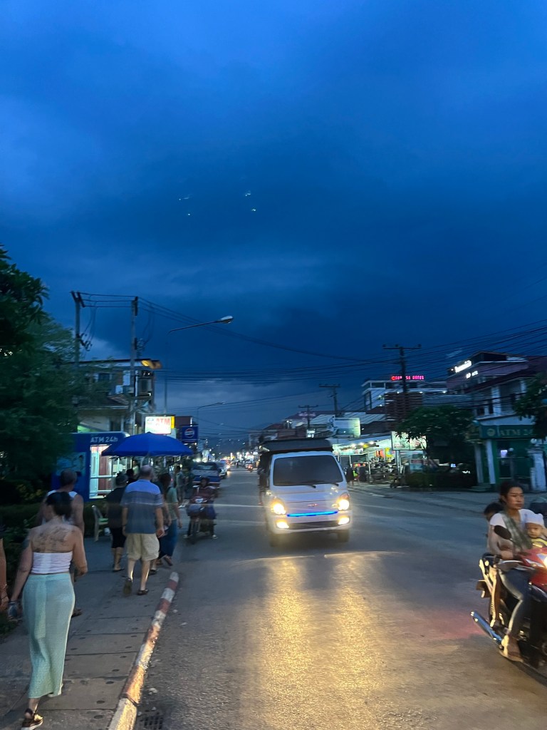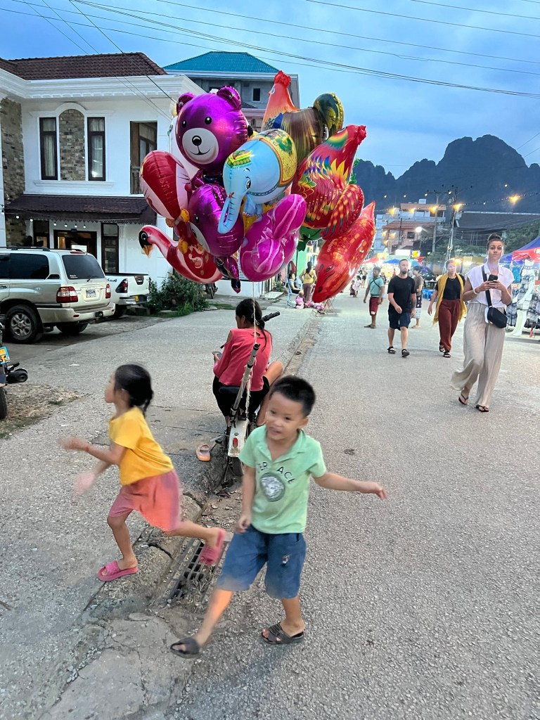 This evening we went for dinner at a restaurant in town. On the way we had a look around and took in a night market and watched the kids playing in the street.