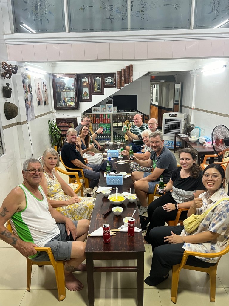 Dinner was a real triumph, with a fantastic 4 course meal made by the husband and wife team who introduced us to a range of new dishes, notably one involving boiled eggs where the embryo has developed and the resulting shell contains an object with hair and feathers, which was off putting for the majority of us. That said our hosts wolfed it done in a matter of a couple of mouthfuls.