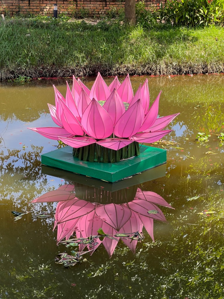 On a nearby stream were paper waterlilies all in a line, which light up in the evening.