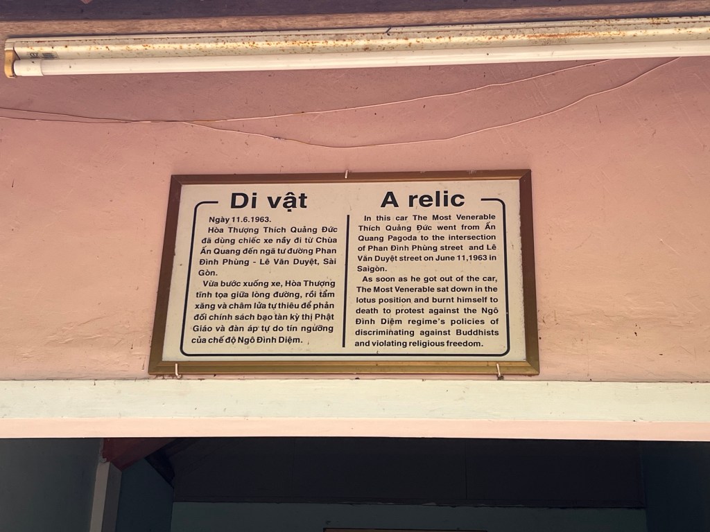 From there we travelled on to a 17th century Buddhist monastery at Thien Mu Pagonda and saw the car that belonged to Thich Quang Duc, the monk who self-immolated in 1963 in protest against the treatment of Buddhist by the South Vietnamese regime.