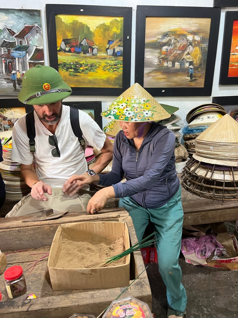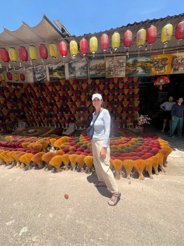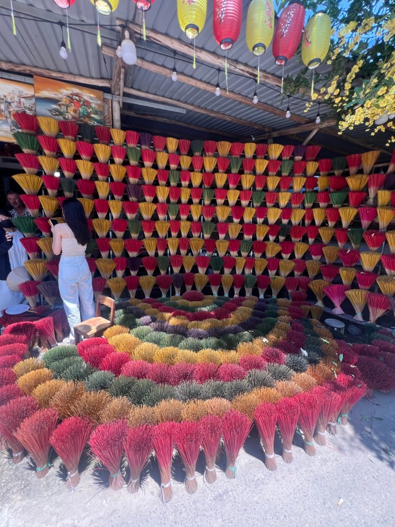 It was then time to get back on the motorbike and a quick stop at a local market selling incense sticks, where we each got the opportunity to make one with scented lemongrass.