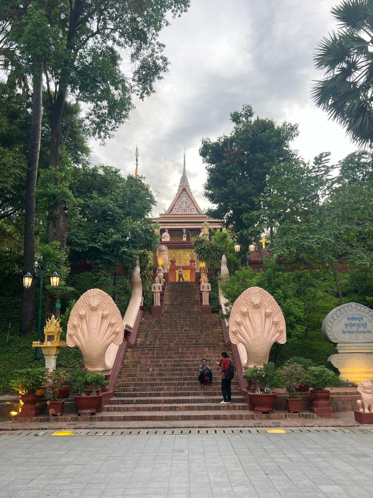 After the walk around the market, we went past a small Buddhist shrine and then jumped back on the Tuk Tuk and went to the main central square to view the small hill and Royal Palace.