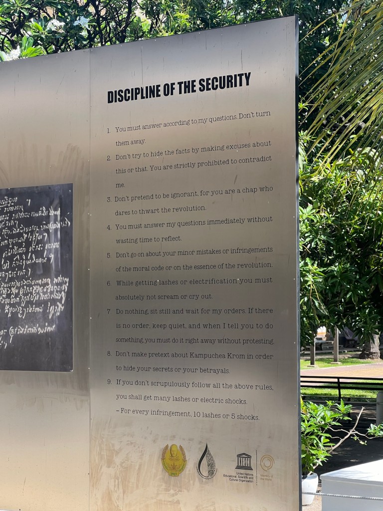 The rest of the rooms housed images of those people who passed through S21 and either died from their torture or left to be sent to the killing fields to be murdered. The images were terribly upsetting, but we are glad to have seen and gained a better understanding of the pain and suffering the victims of Pol Pot experienced. It’s a sobering lesson that all should see and thus avoid future atrocities such as those going on in the Ukraine and Palestine at present. The suffering is not worth it.