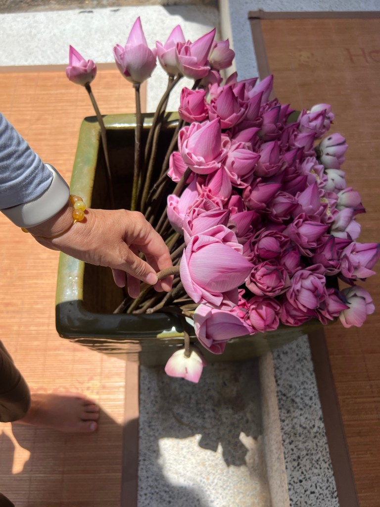 Part of the celebrations took the monks down to a boat on the Mekong River and they headed out surrounded with flowers and gifts to be dispatched into the water.