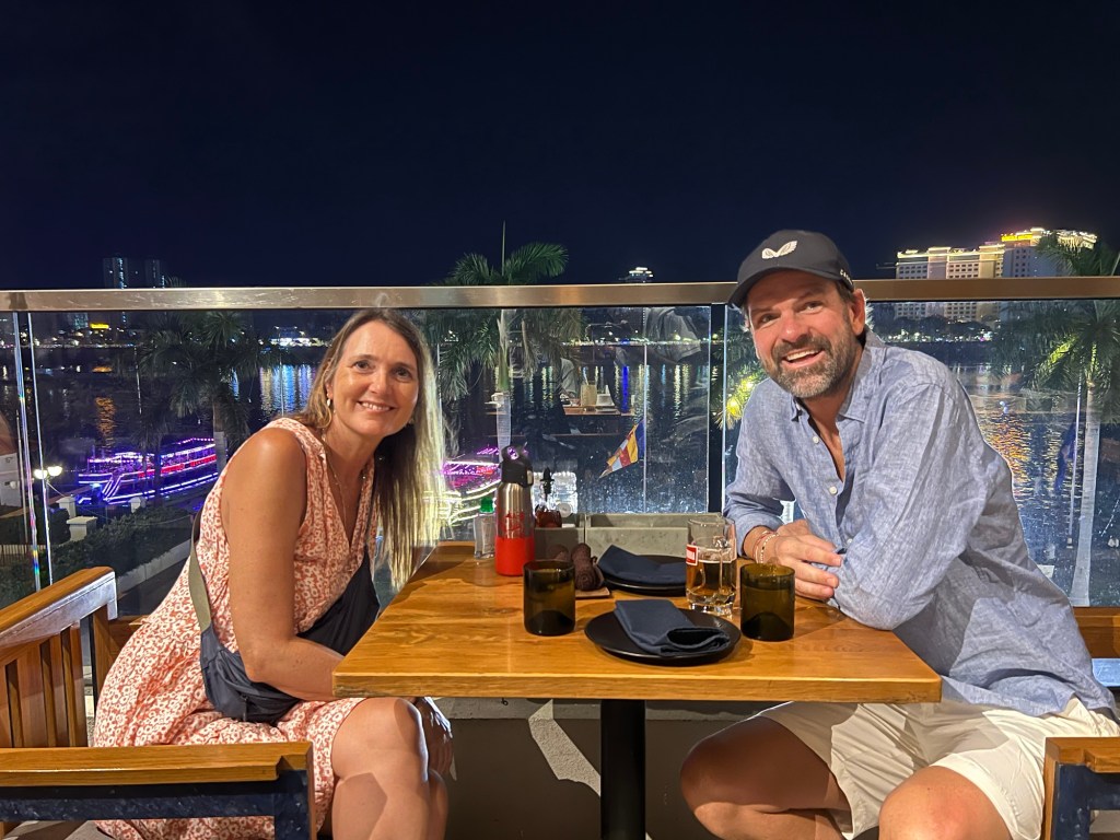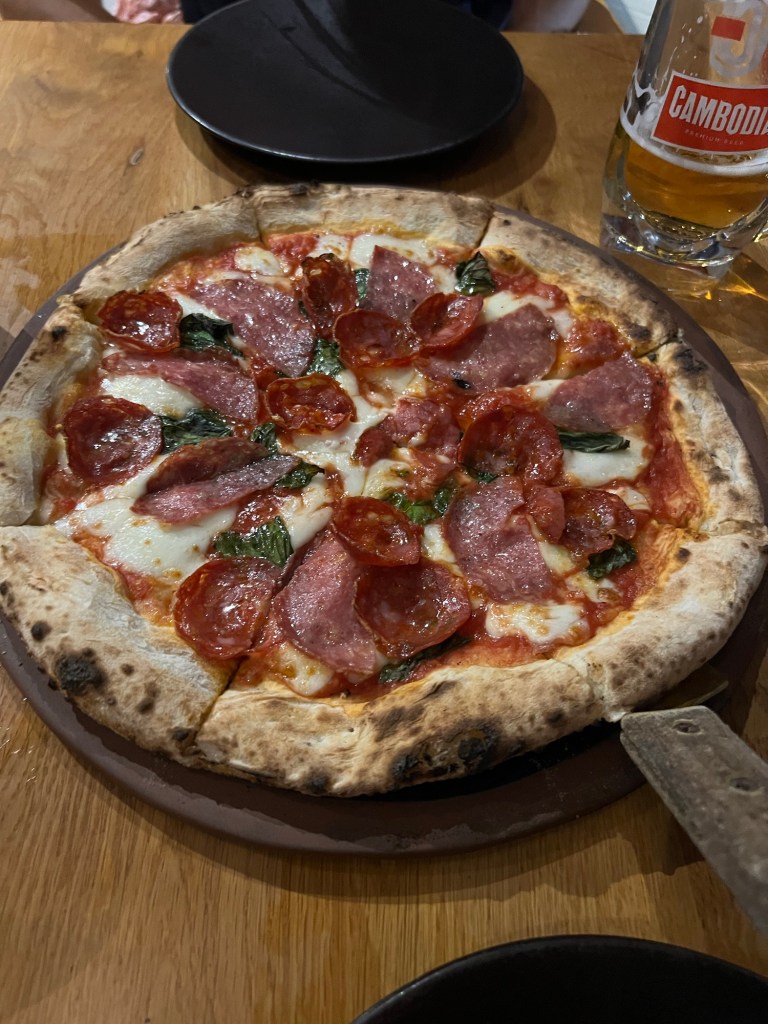 Tonight we decided to have a break from Cambodian food and treated ourselves to a pizza in a roof top bar.
