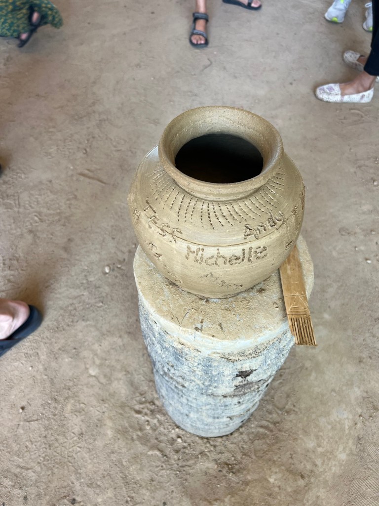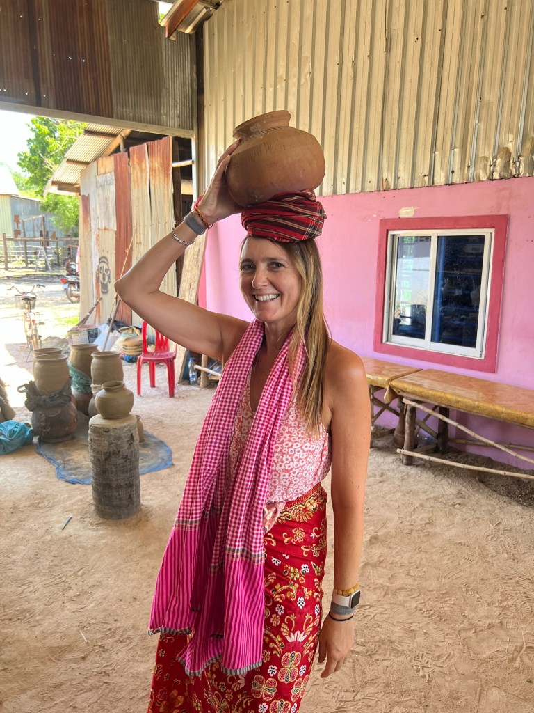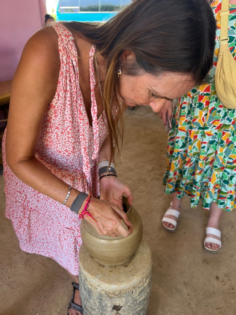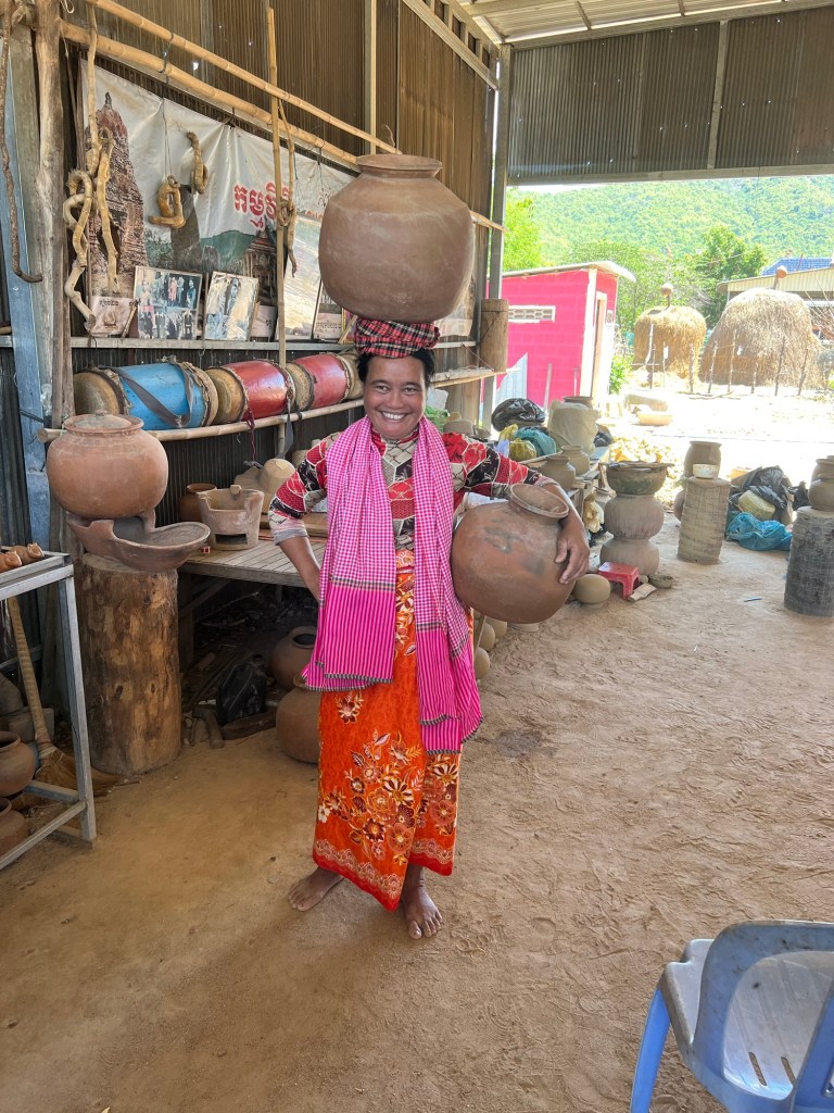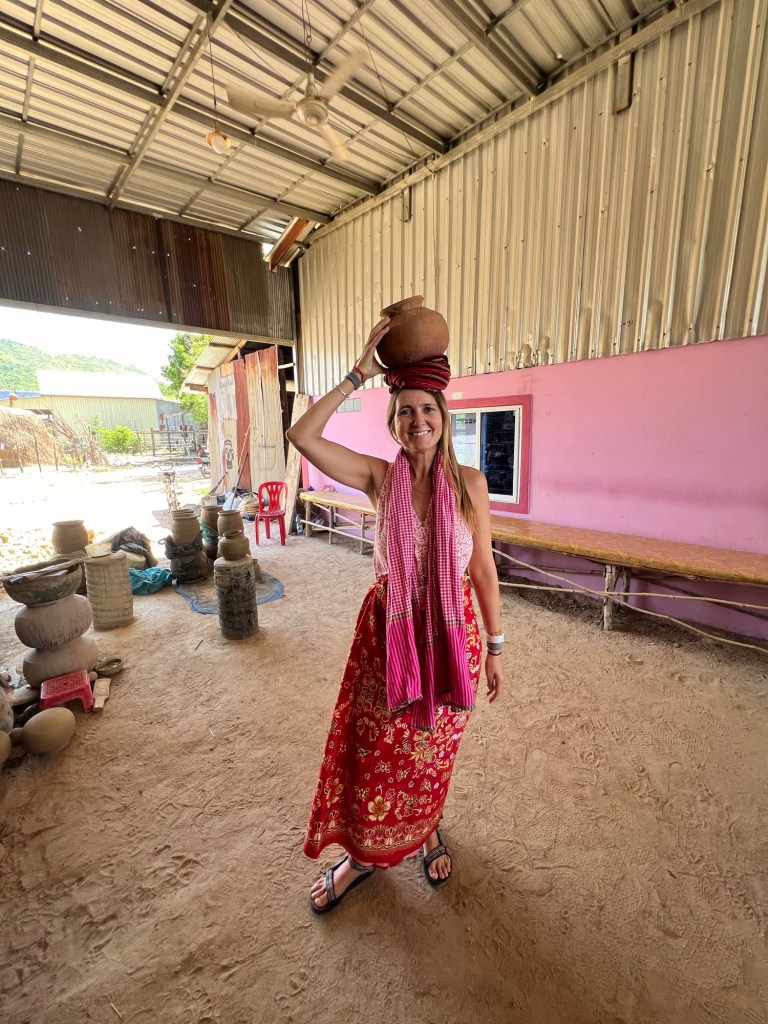 The potter was a lovely smiley lady, who showed us her national dress and also how to balance the water pots on her head.