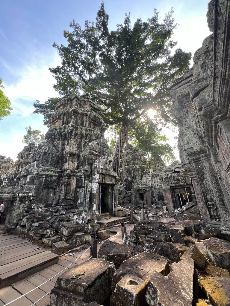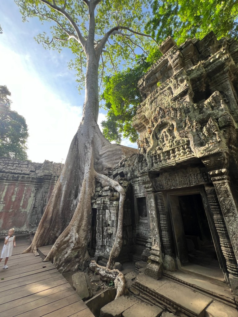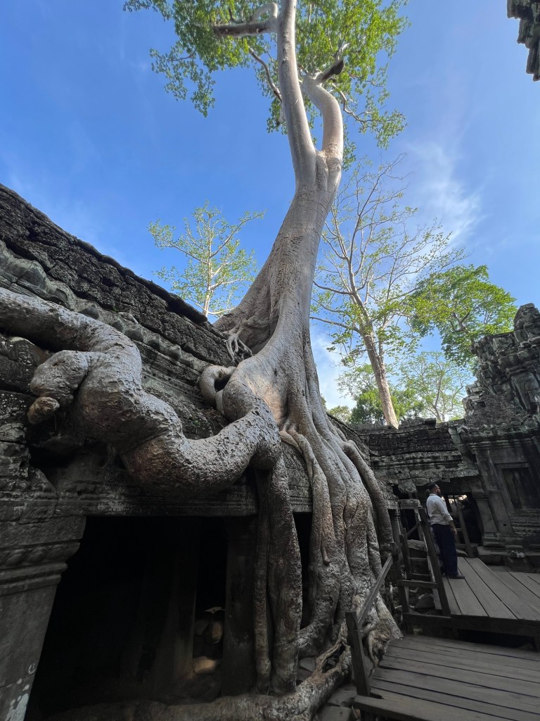 Mighty century old trees sit amongst the temple structure creating a twisted beauty that will stay long in the memory.