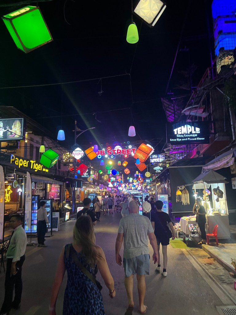 After a drink with the whole travel group, a few of us headed to Pub Street in the centre of Siem Reap for a bite to eat and cocktails.