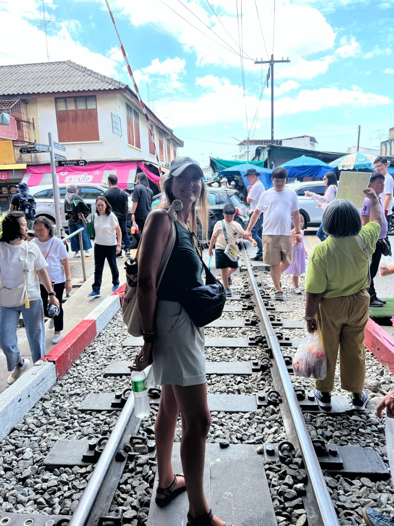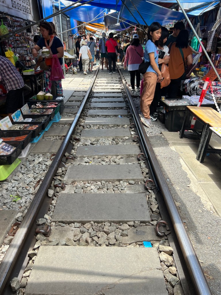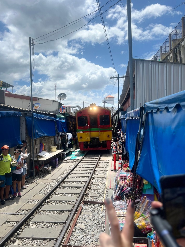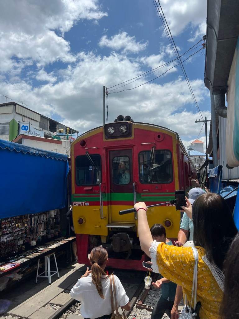 Our first port of call was Mae Klong where we discovered local fresh goods being sold along the tracks of a functioning railway track. It was truly amazing to watch as the public train comes through the market and the vendors pull aside their tents, umbrellas, stalls and fresh foods to allow for room for the train to pass in between the stalls and the tracks.