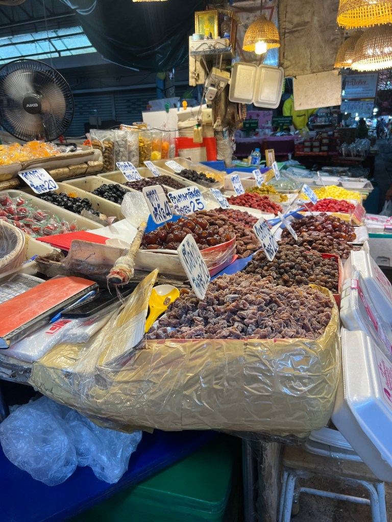 We then went to visit the fresh local wet market, famed because the floors are forever wet! We walked through the narrow walkways between the stalls selling a host of fresh fruits, vegetables, dried shrimps, fresh fish and meats and many prepared takeaway meals sold daily to the locals and tourists alike.