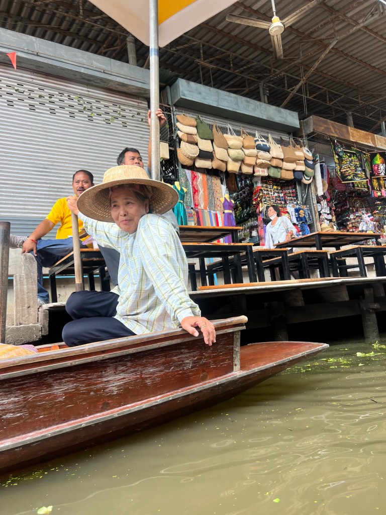 After the market we drove for 30mins to the Damnoen Saduak floating market. It’s been an active place to trade for the locals over the last 150 years. We took a typical paddle boat to discover the market and sail along the various canals that stretch for over 40 miles all the way back to Bangkok.