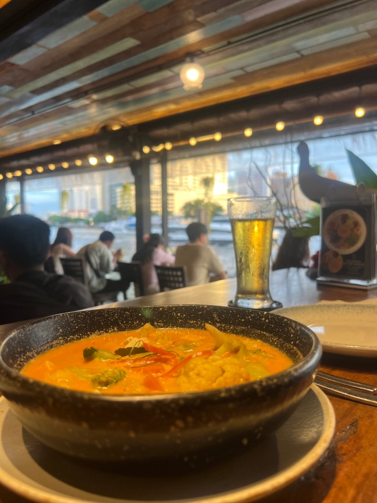When the food arrived it looked and tasted so very good and with the backdrop of the river and sunset it made for a great way to finish our stay in this part of Bangkok.