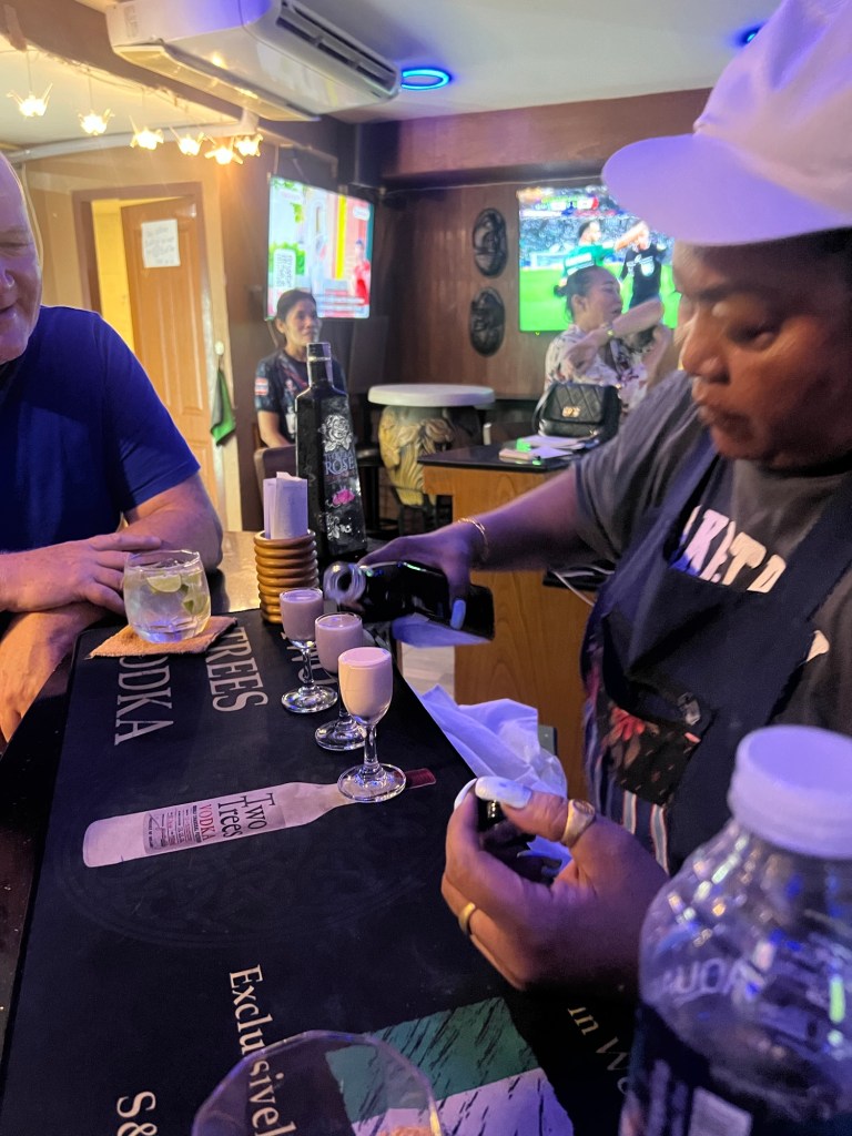 Post our meal, we headed to a nearby sports bar and after a little encouragement from Shaun we found ourselves drinking shots of tequila rose – a new family favourite!
