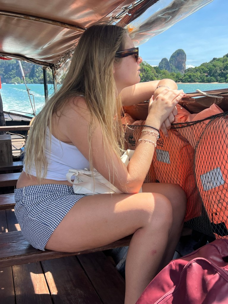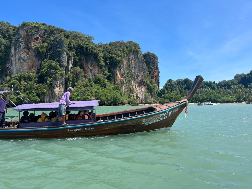 The first mode of transport is a long tail boat from Railay beach to Ao Nammao Pier.