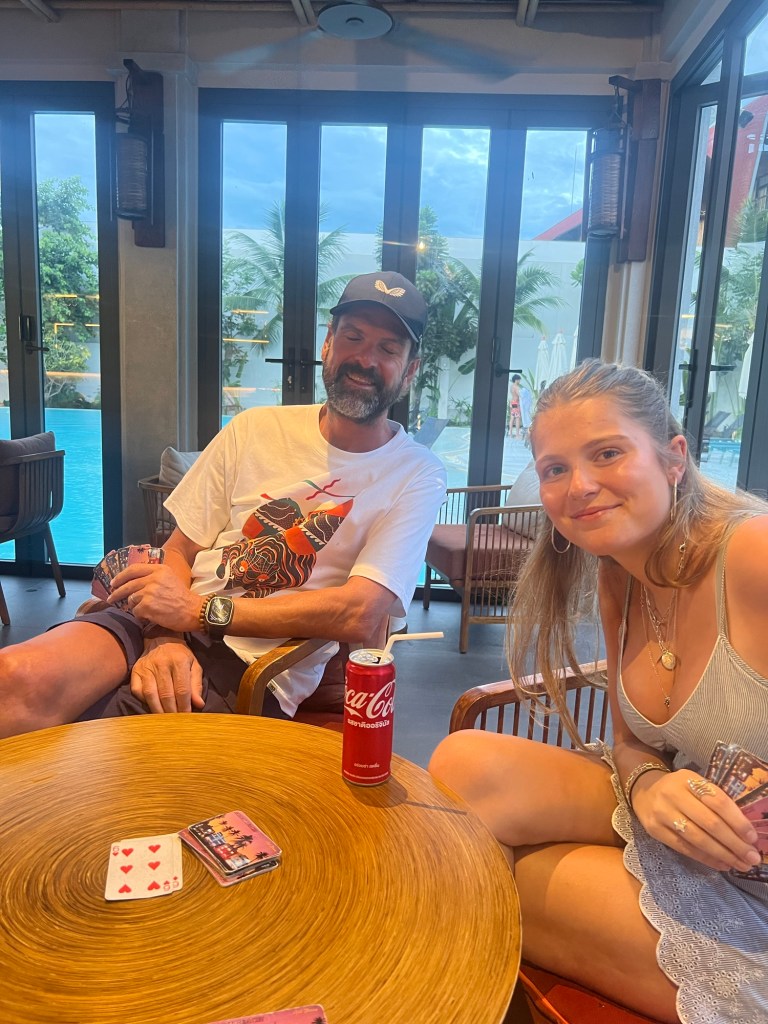 With the return of the sun and a great view from the hotel grounds we decided to make the most of the evening. After purchasing cocktails we sat in the bar and watched the sunset playing cards with Amelia. Great memories that will stay with us when she returns to the Uk in a week’s time.