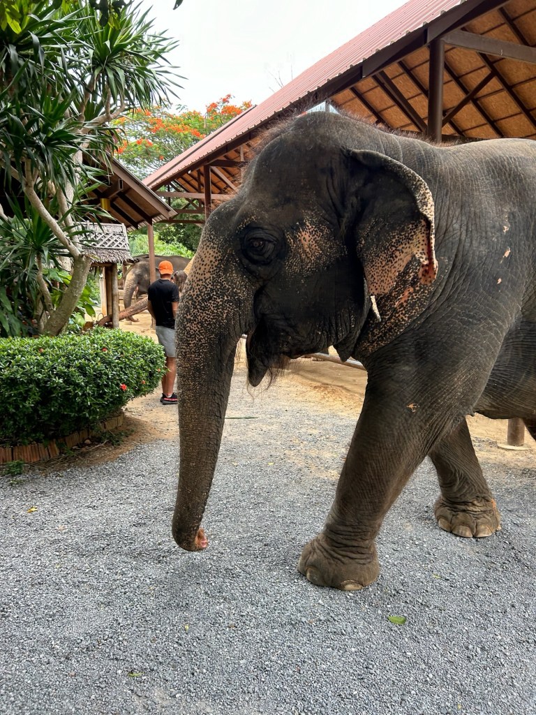 The stories about the elephants former lives made sad listening with some from circuses where they were beaten, marked and generally abused daily until being rescued by the sanctuary.