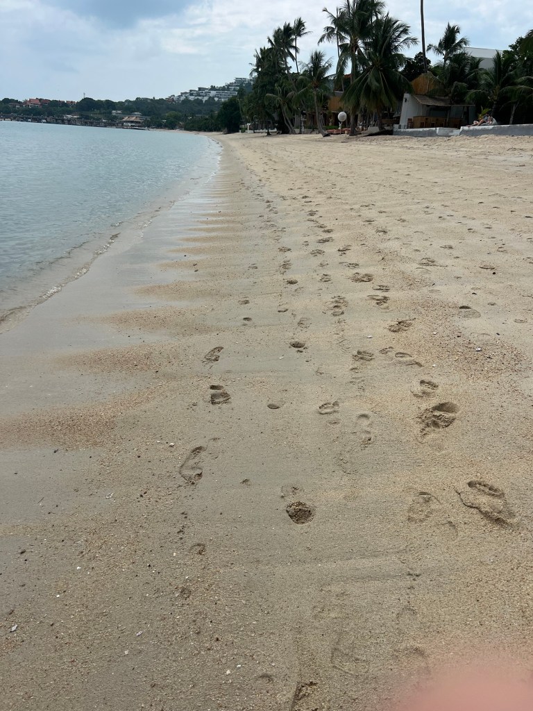 This morning we enjoyed a stroll along the deserted beach with our feet the only footmarks in the sand.