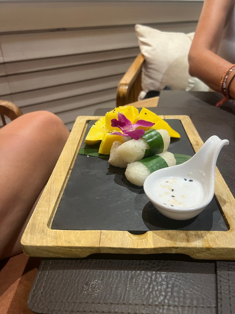 Amelia was keen to finish with a local Thai favourite, sticky rice with mango and cream. It looked and tasted delicious.