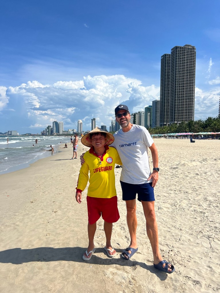We are in Da Nang at the height of the Vietnamese summer, however due to the intense heat, it’s over 36c today, the beaches remain relatively empty. It’s only later in the day when the temperatures start to ease, that the locals arrive and take a dip in the sea. In the meantime the only people we spotted sunbathing were Europeans desperate to soak up the sun and top up their tans!