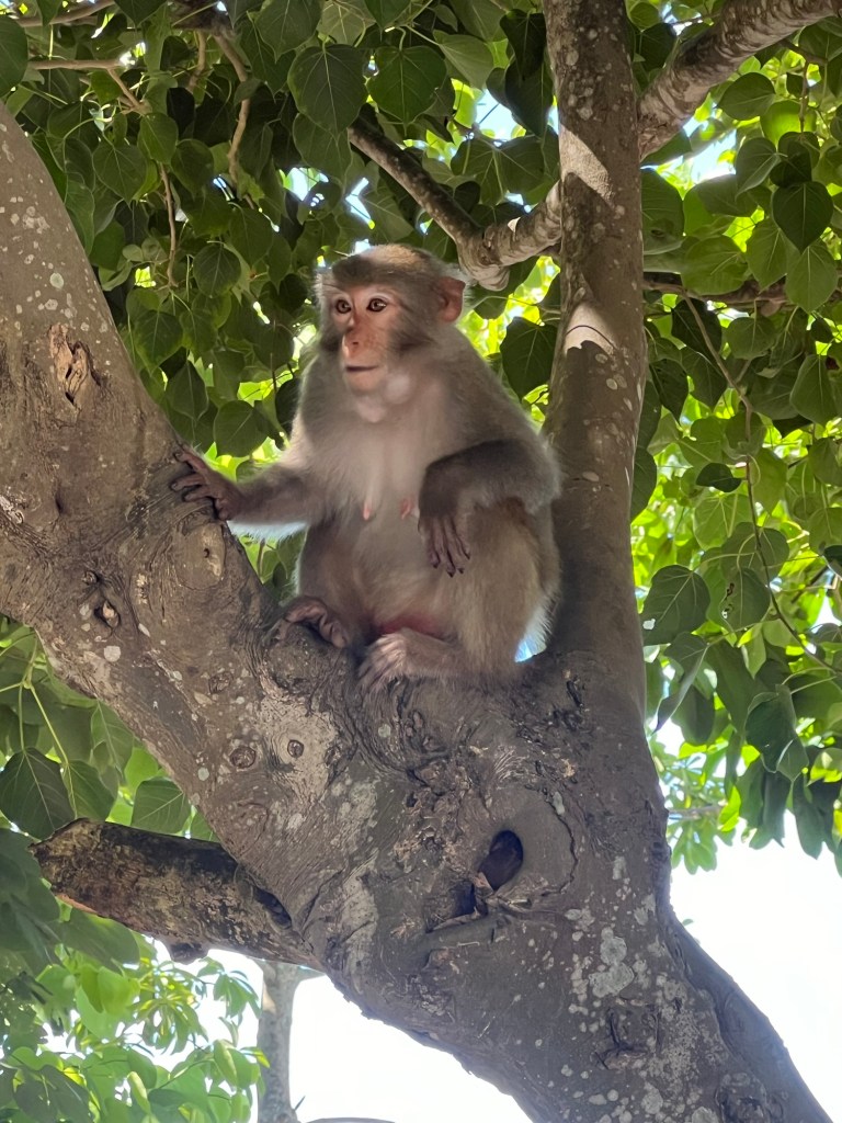 The pagoda with turtle shapes is located on a hill of Son Tra peninsula, halfway up the mountain, facing the sea, with its back against the primeval forest with many animals and birds of Son Tra peninsula – today we just spotted the monkeys who are watching and waiting for food, or anything else to hand!