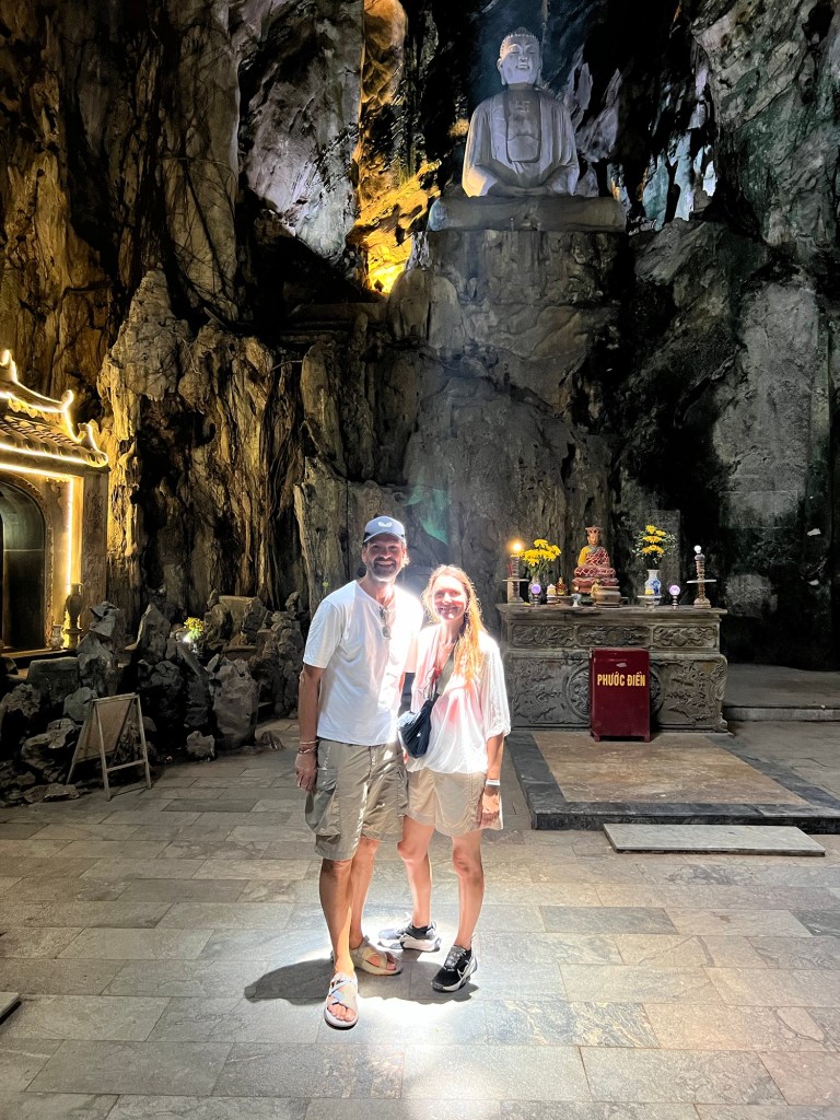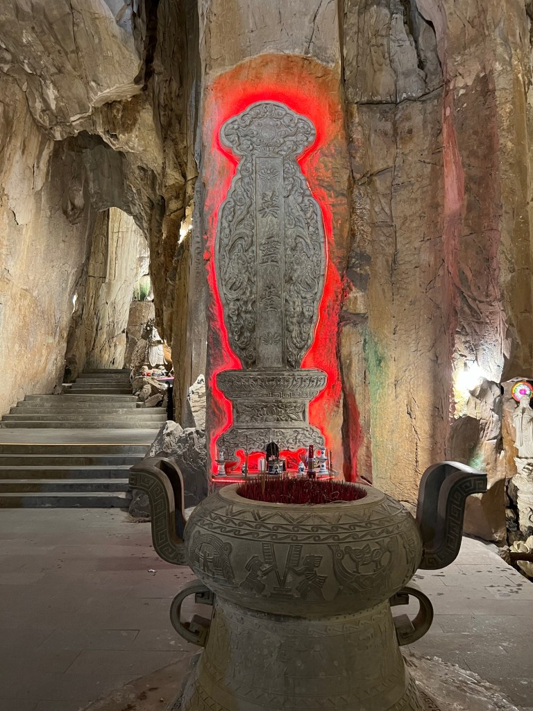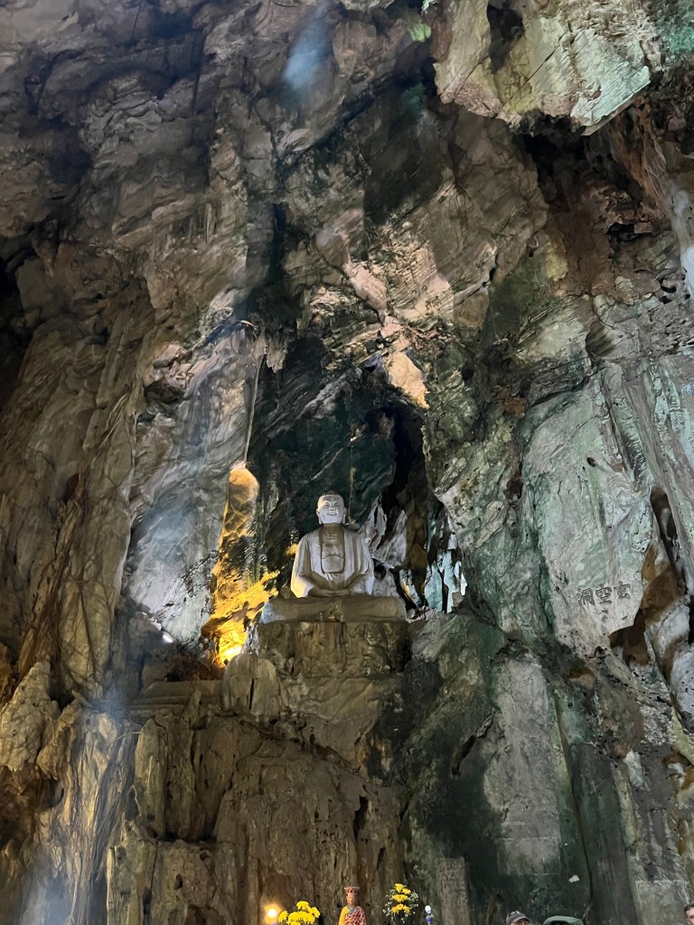 All of the mountains have cave entrances and numerous tunnels, and we climbed to the summit of Mount Thủy. Within the mountains are several Buddhist sanctuaries.