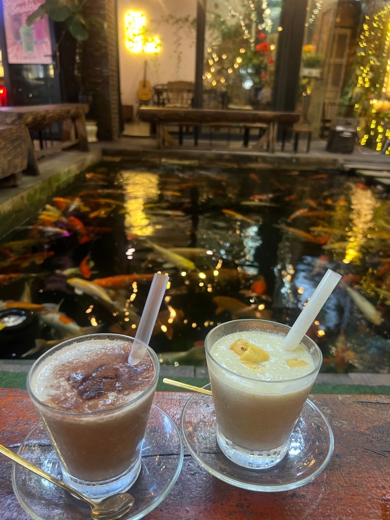 After the tour finished mid-afternoon we headed to a local cafe we’d been recommended where we drank flavoured coffee & banana smoothies next to a carp filled pond, in a hidden town garden. It was very atmospheric and the drinks were pretty good too.