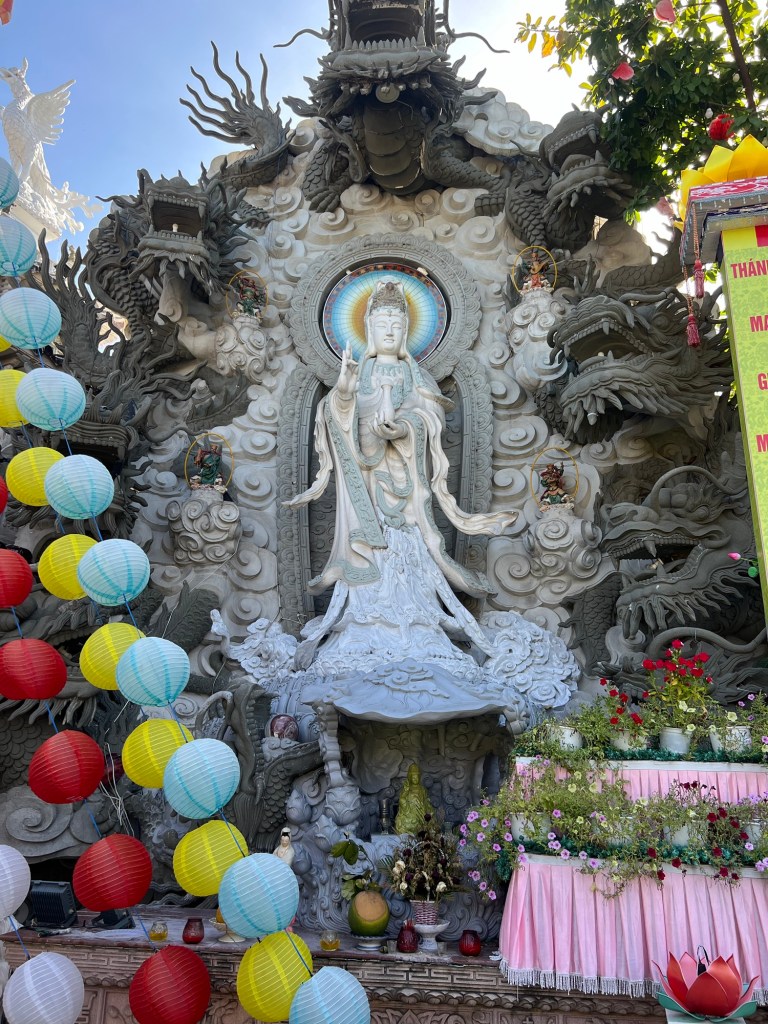 He gave us a more detailed tour of the museum before we moved on to visit the Long An Temple. This is one of the oldest pagodas in the area and definitely had a lived in feel of it. In fact parts were a work in progress with building materials strewn along the floor. The main section however was stunningly beautiful with rich vivid colours and a real eye to behold.