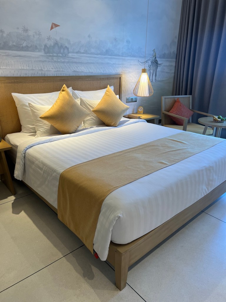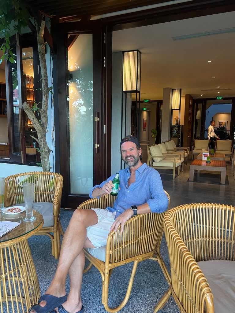 We were greeted with the most amazing hospitality, complimentary welcome drinks, a voucher for a evening meal at the hotel and discount offers against a host of things including restaurants in the town, tailors and tours to do. Within an hour we’ve booked tonight’s restaurant in the town, a walking tour, a day trip to My Son sanctuary, an archaeological Chang temple site.
