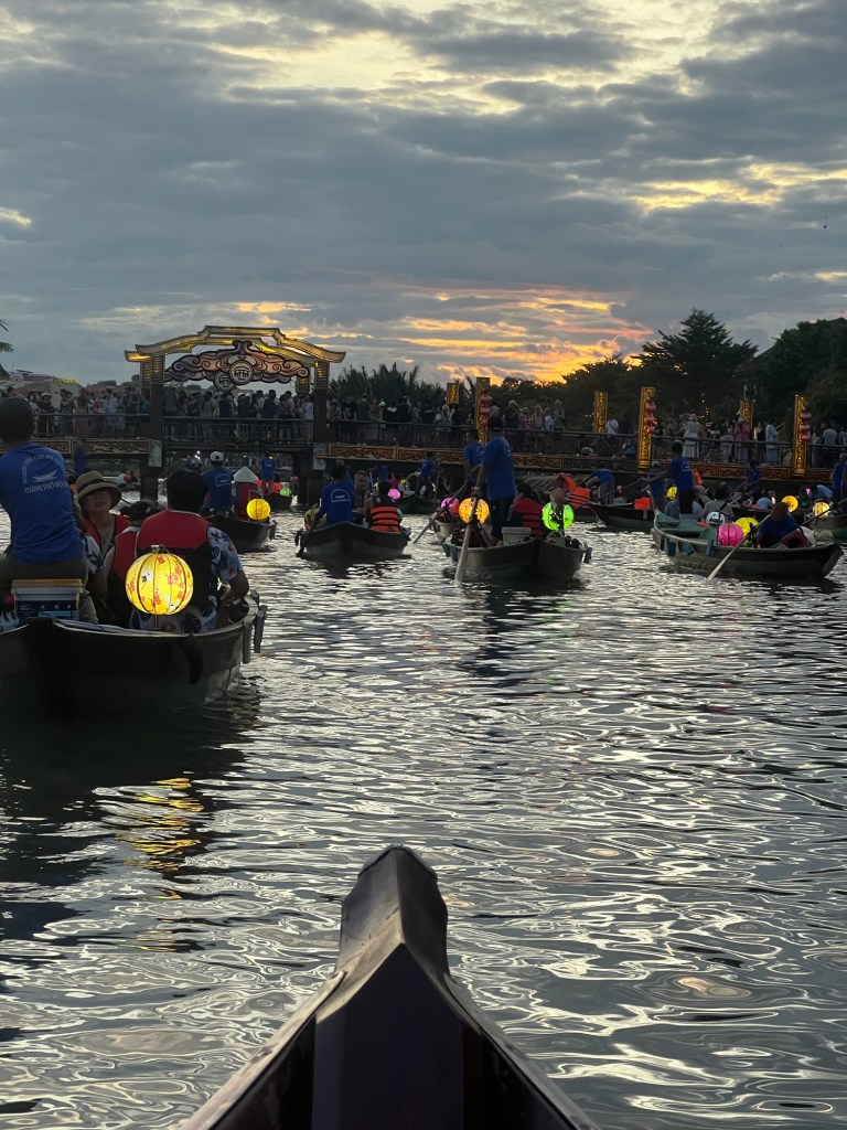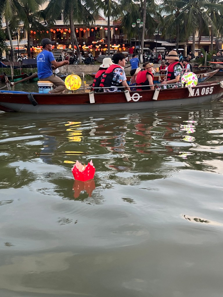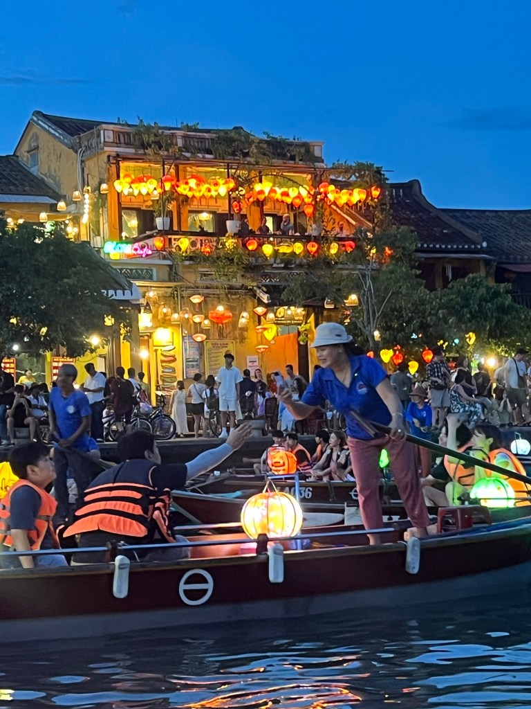 With early evening not for away we went out on a small lantern boat up the river along the route of the old town.