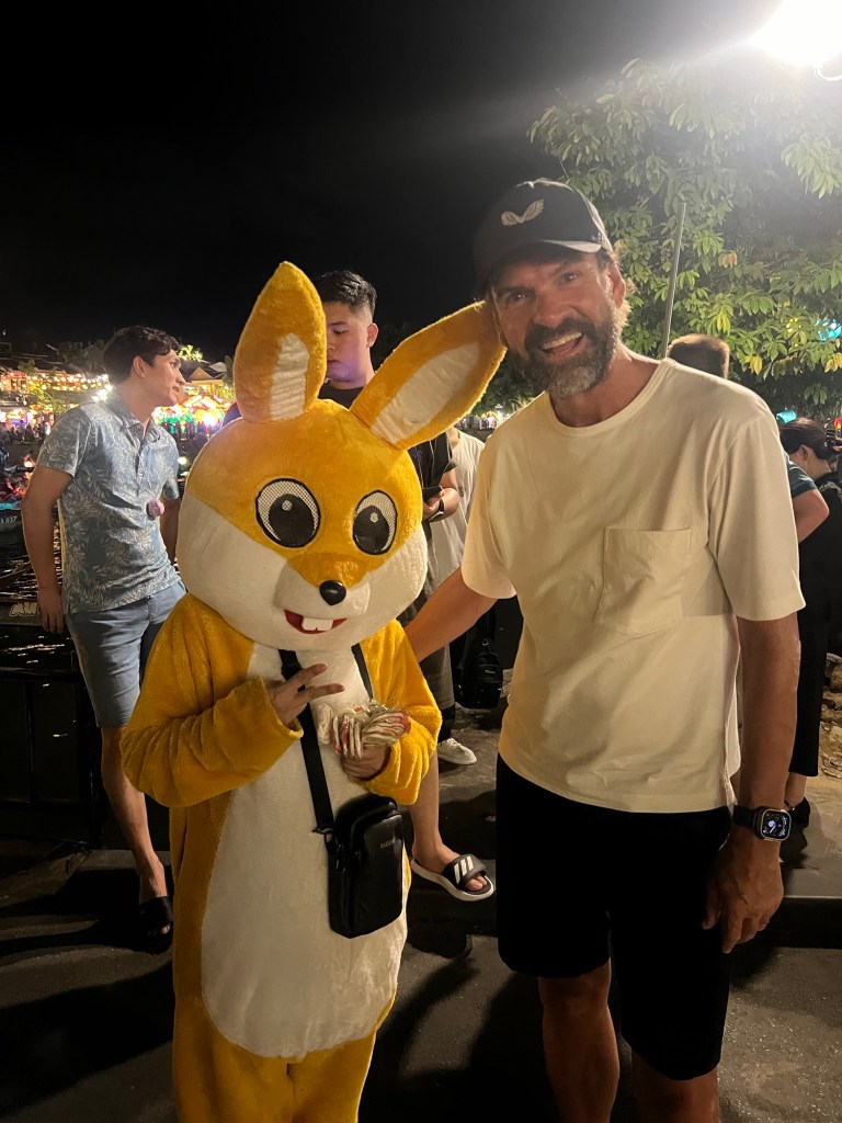 After dinner we went for a wander along the river and bumped into yet another of the Disney clan. Andy just can’t resist making their acquaintance.