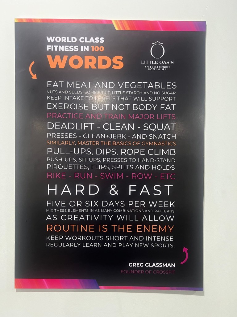 After getting back to the hotel, Andy went to get his run fix in the gym and is taking inspiration from the Little Oasis fitness signs….we shall see if it works!