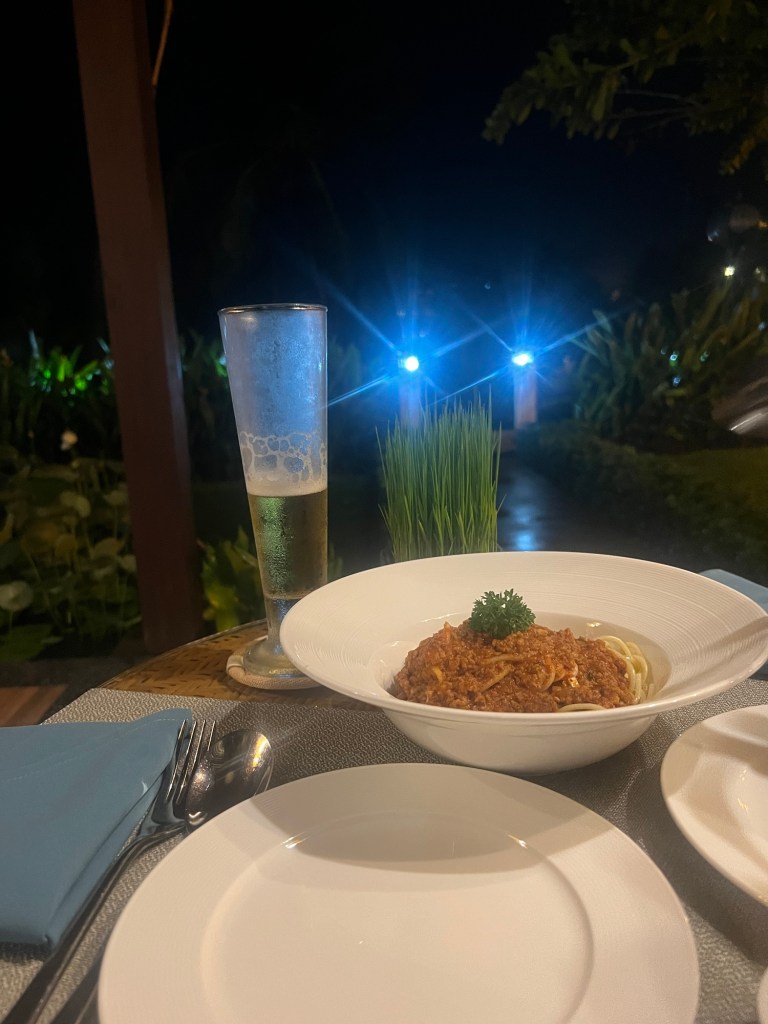 So to avoid the floods outside, we treated ourselves one more time at the hotel restaurant and sat under the porch watching the rain.