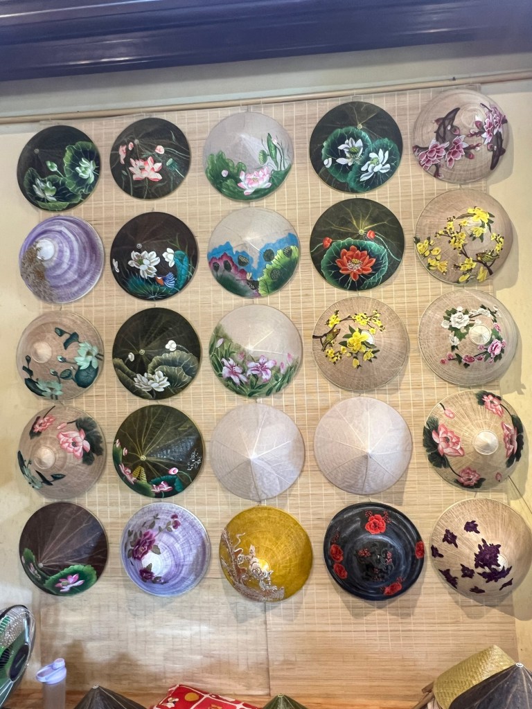 Inside one of the smaller buildings we came across an area where you could make your own Vietnamese bamboo hats. All were painted in the most beautiful colours with intricate individual designs.