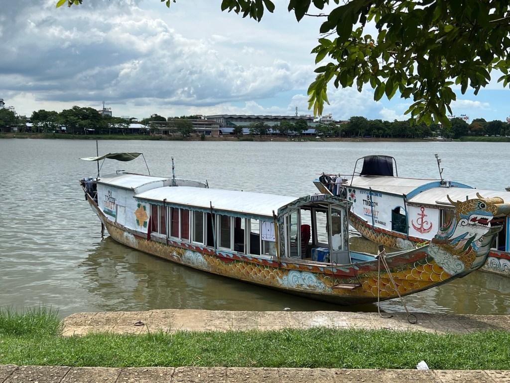 After spending a few hours in the Citadel we left in search of refreshments. We walked across one of the many bridges over The Perfume River, so named due to the local fauna nearby and where you can take cruises in Dragon inspired boats.
