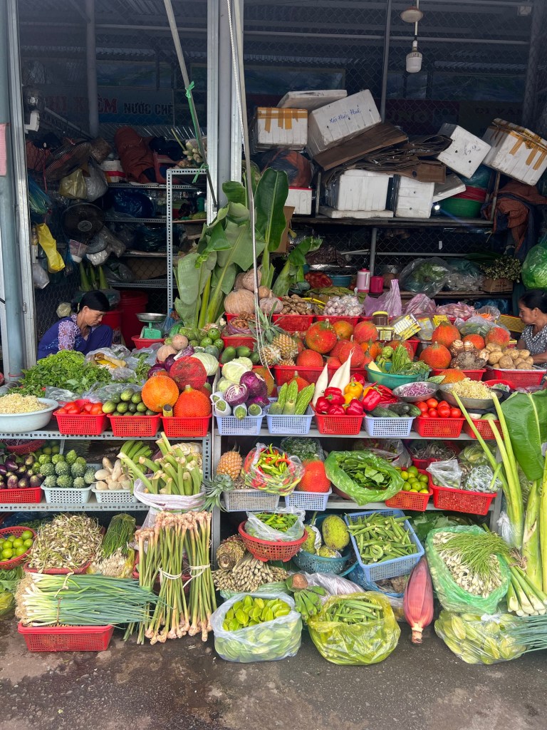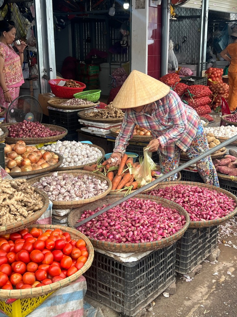 Our next stop was Dong Ba Market, one of the largest in the region where you can buy anything and everything. On the outside we found fruit and vegetable stalls, being sold almost off the street itself and were taken aback by the variety of bananas…as well as the colourful array of fruit and veg on offer. So great to see and it explains why the majority of Vietnamese people are so slim and healthy.