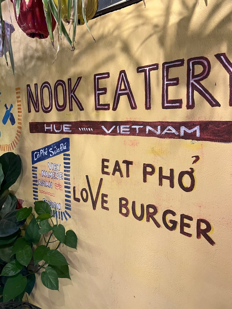 As it’s Saturday we decided to hit central Hue and check out the restaurant and cafes. We’d been recommended a place called Nook, which was located off a side street and as we walked down a dark alley we were having second thoughts. However it proved to be an excellent spot, frequented by many Europeans and did great veggie dishes.