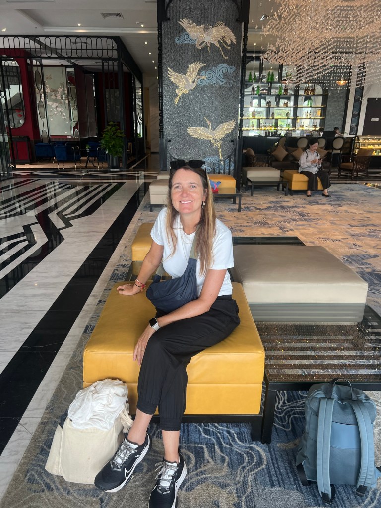 We our staying at Melia Vinpearl, a fantastic hotel which is very glam with big white rooms and views out over the river and the beach beyond.