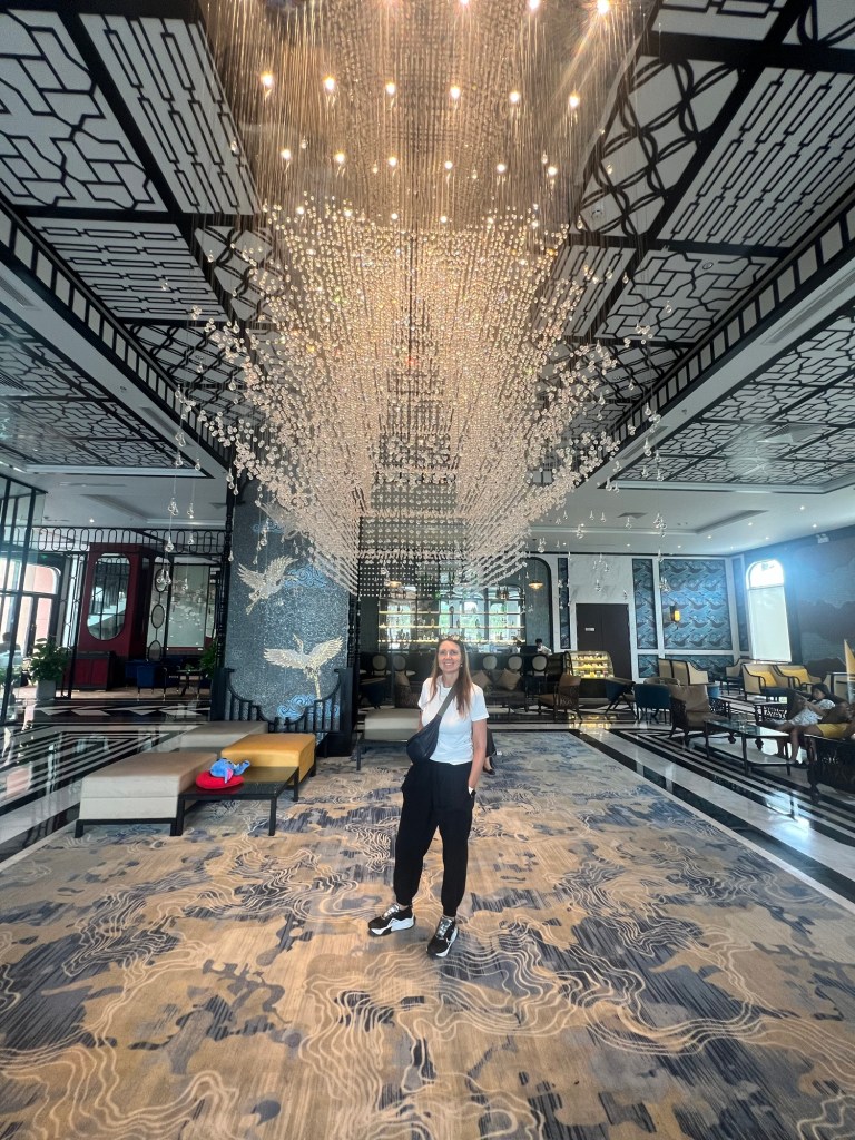 We eventually arrived back at our glitzy hotel and Michelle did her best to create an ‘A’ shape, in honour of our daughter Amelia!