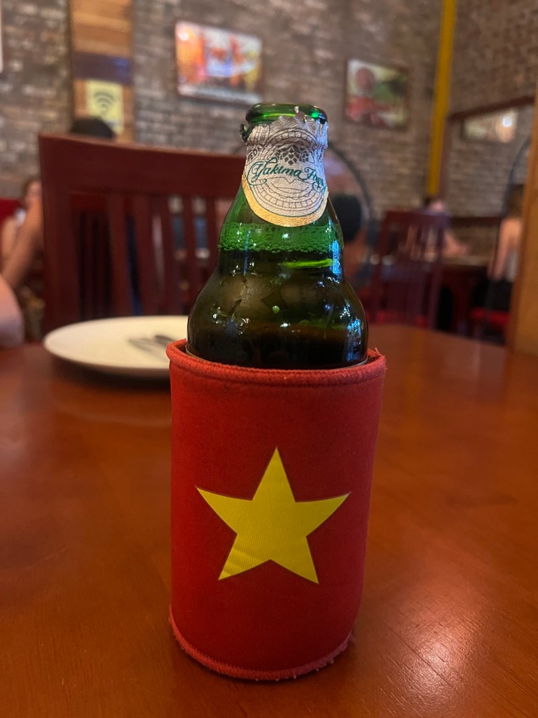 A classic order of chicken masala with naan bread and popadoms helped down with some Saigon beers.